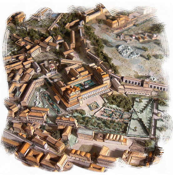 라티나 가도에는 사진과 같이 정원이 딸린 장엄한 아시니우스 궁전이 모습을 드러냈다. 아시니우스 씨족은 고대 로마의 가장 명망 있는 가문 중 하나였다.