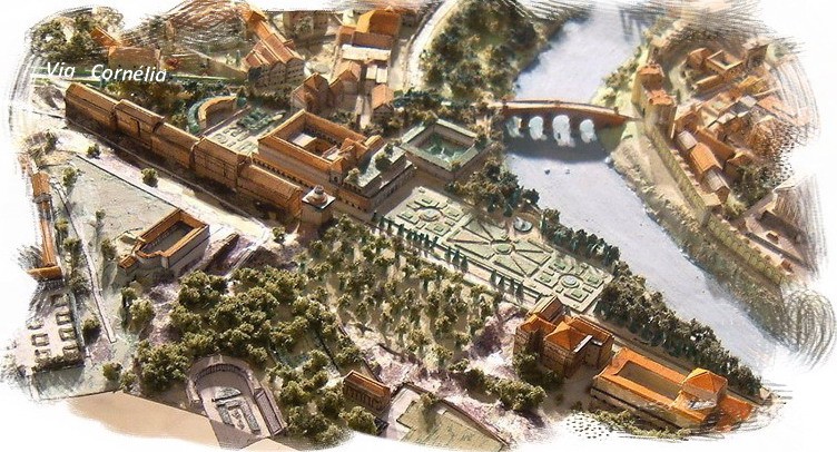 바티칸 골짜기를 향해 셉티미아나 가도를 따라 올라가면 네로의 어머니 소 아그리피나의 거대한 궁전 중 하나를 볼 수 있다. 궁전으로 오기 바로 직전에 길을 따라 늘어선 정원들, 아마도 드루수스의 정원이 있다. 따라서 셉티미아나 가도는 바티칸 골짜기와 사진 오른쪽에 있는 네로 다리를 연결하는, 사진 상단에 있는 코르넬리아 가도와 교차하게 된다.