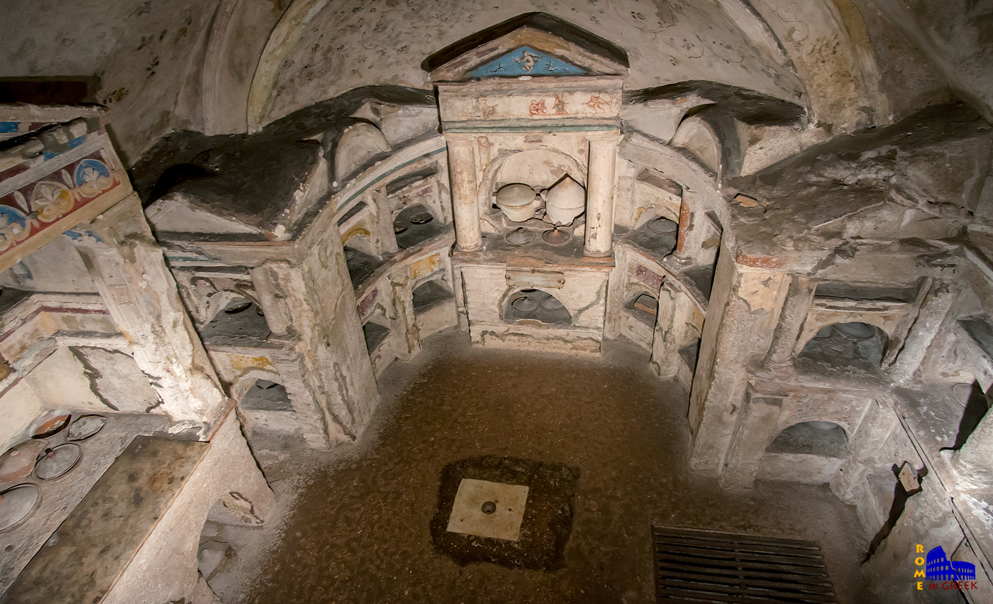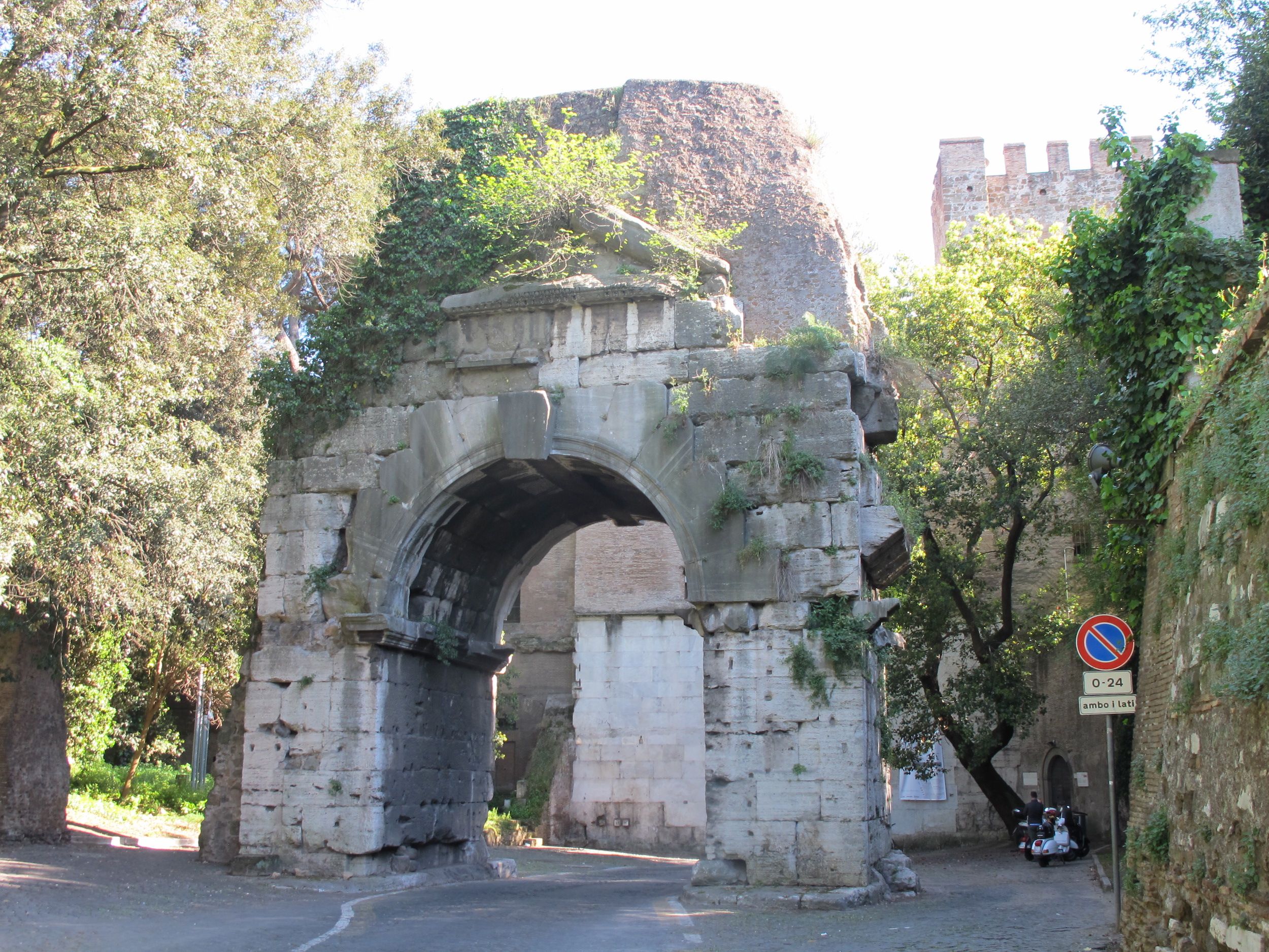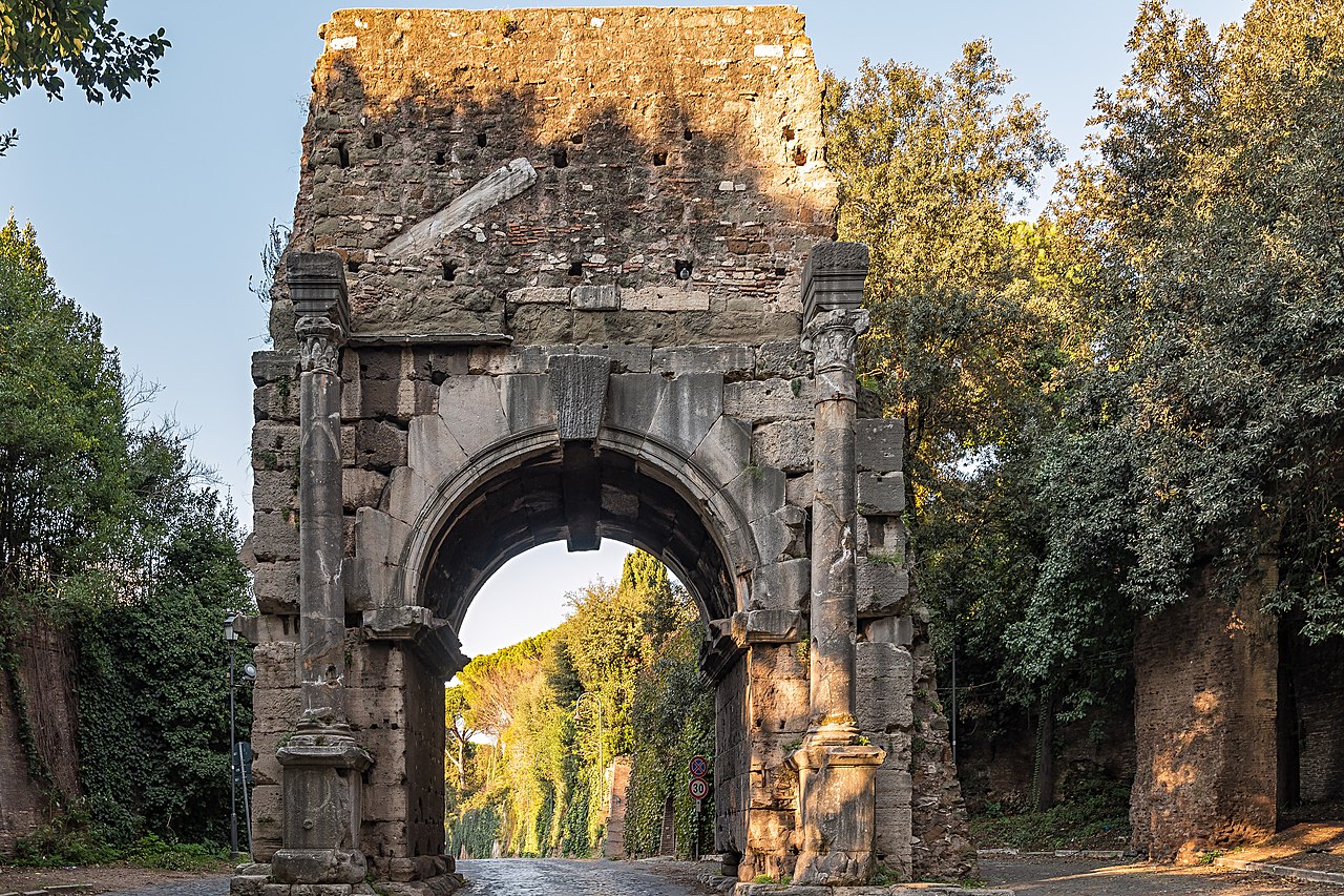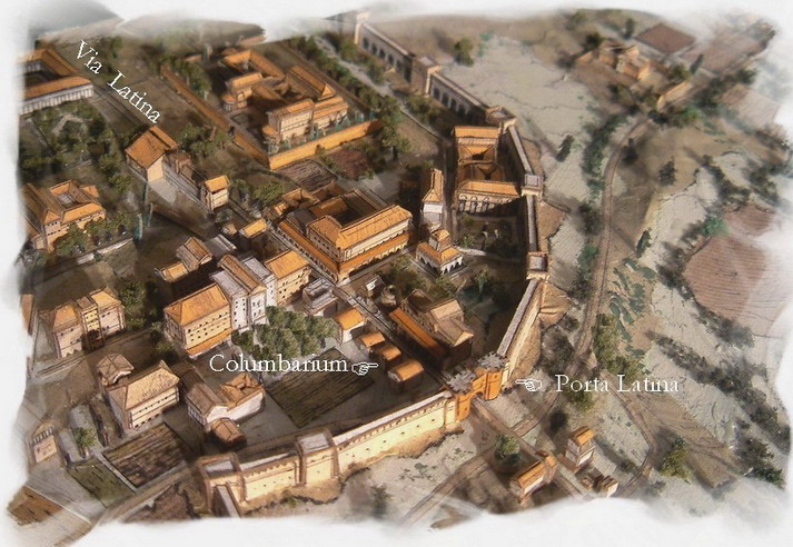 아우렐리아누스 성벽의 포르타 라티나. 콜룸바리움(카타콤, 지하 유골 안치소)은 유골 단지가 보관되는 벽 내부의 틈새로 구성된 일반적인 장례 공간이다. 포르타 라티나에 가까운 폼포니우스 힐라스의 콜룸바리움은 오늘날에도 비교적 잘 보존되어 있다. 폼포니우스 힐라스는 해방 노예였으며 아우구스투스와 티베리우스 아래에서 부자가 되었다. 그는 자신과 아내를 위해 이 콜룸바리움을 짓도록 했다.