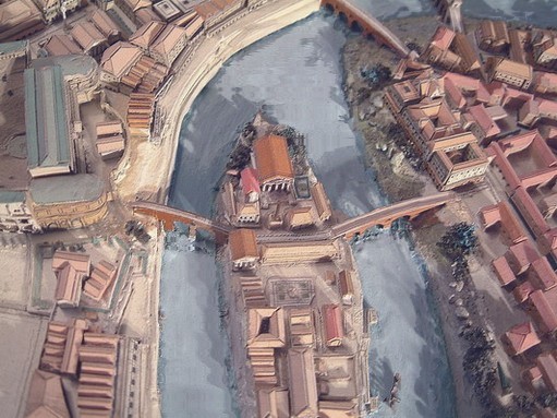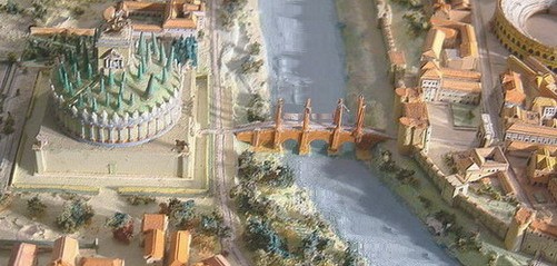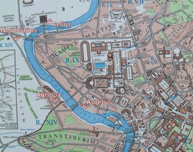 아일리우스, 네로, 아그리파, 아우렐리우스 다리를 가리키는 지도