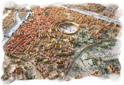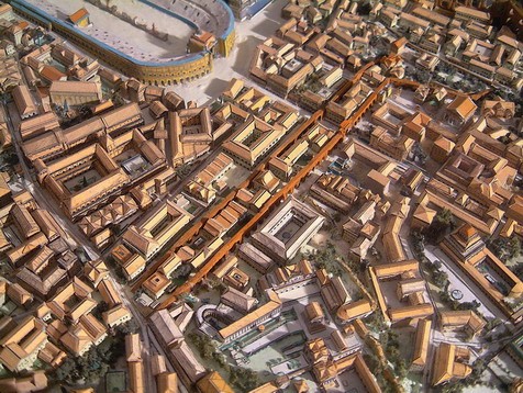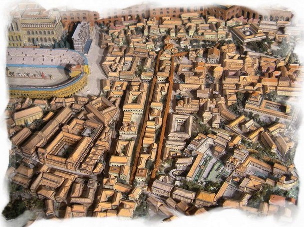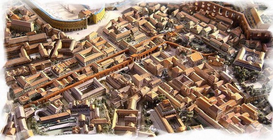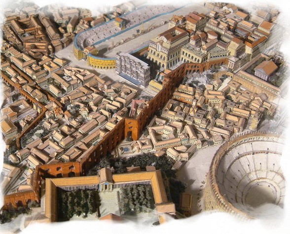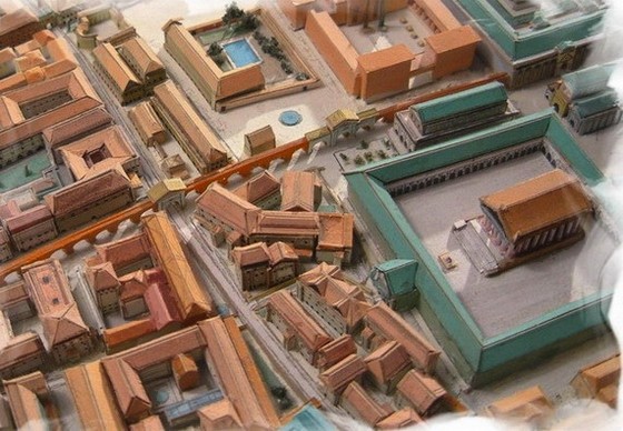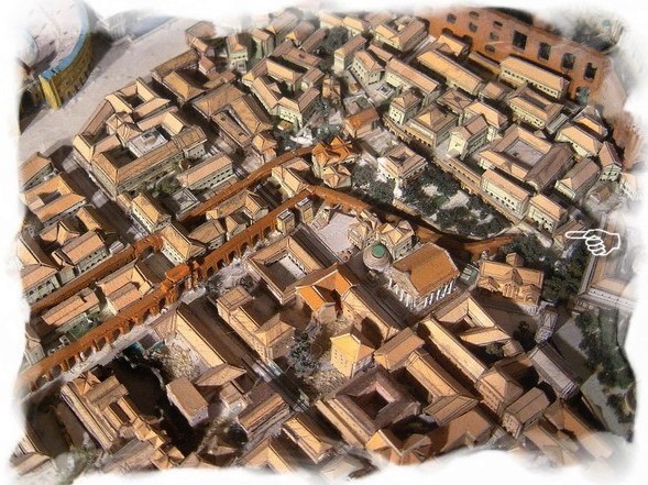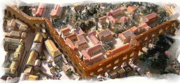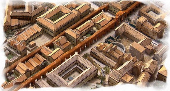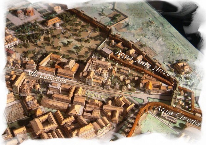 도미티아누스 황제는 아쿠아 클라우디아를 오른쪽 상단에 보이는 팔라티노까지 확장시켜 궁전에 물을 공급했다.