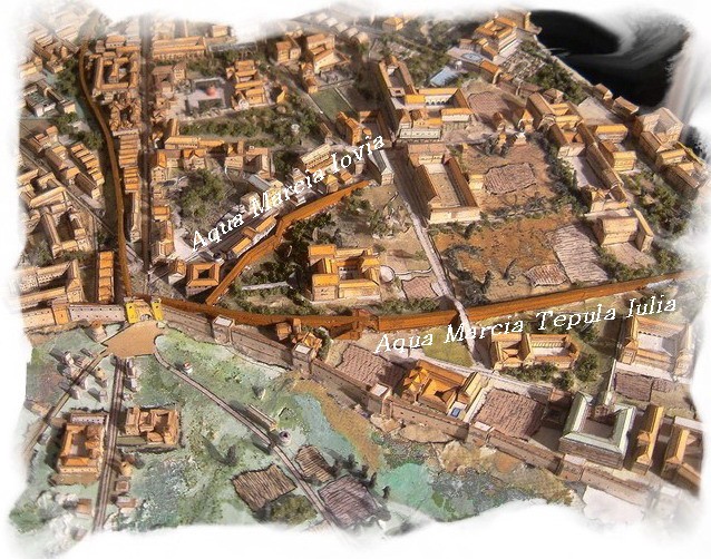 로마의 세 번째 수도교인 아쿠아 마르키아 테풀라 이울리아는 BC 144년에서 140년 사이에 지어졌다. 수도교는 프라이네스티나 문(오늘날의 포르타 마조레 – 정문)을 통해 로마로 들어가 아우렐리아누스 성벽을 따라 티부르티나 문으로 이동한 다음 도시로 들어와 두 갈래로 나뉘었다.
