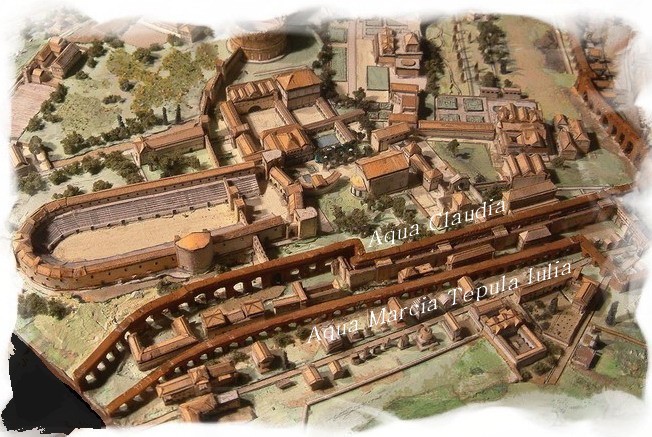 아쿠아 클라우디아는 또한 첼리오 언덕의 저택들을 에워싸듯이 구부러지며 지나갔다.