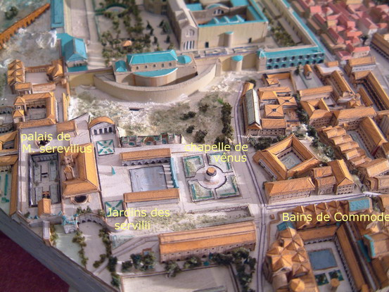 콤모두스의 목욕탕과 같은 고지에 AD 35년에 집정관을 지낸 M. 세르빌리우스 노니아누스의 저택이라는 정원이 있는 놀라운 궁전이 서 있었다. 궁전은 심지어 사진 왼쪽에 있는 아쿠아 마르키아 안토니니아나까지 확장되어 있었다.
