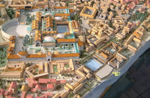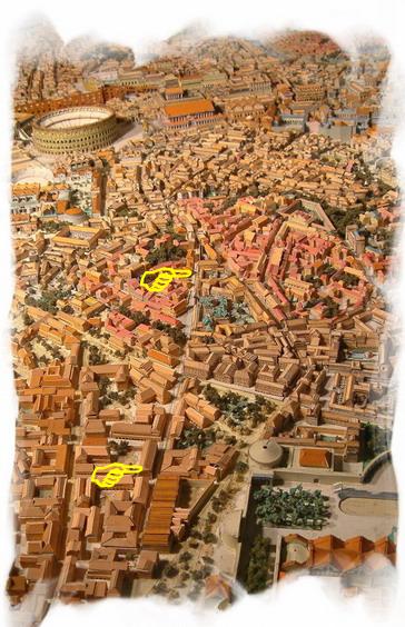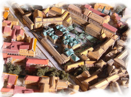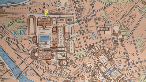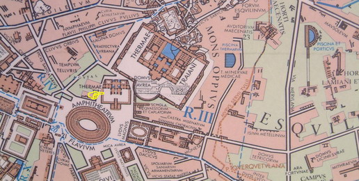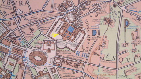 네로 목욕탕은 오른쪽의 도미티아누스 경기장과 왼쪽의 판테온 사이에 자리 잡고 있었다.