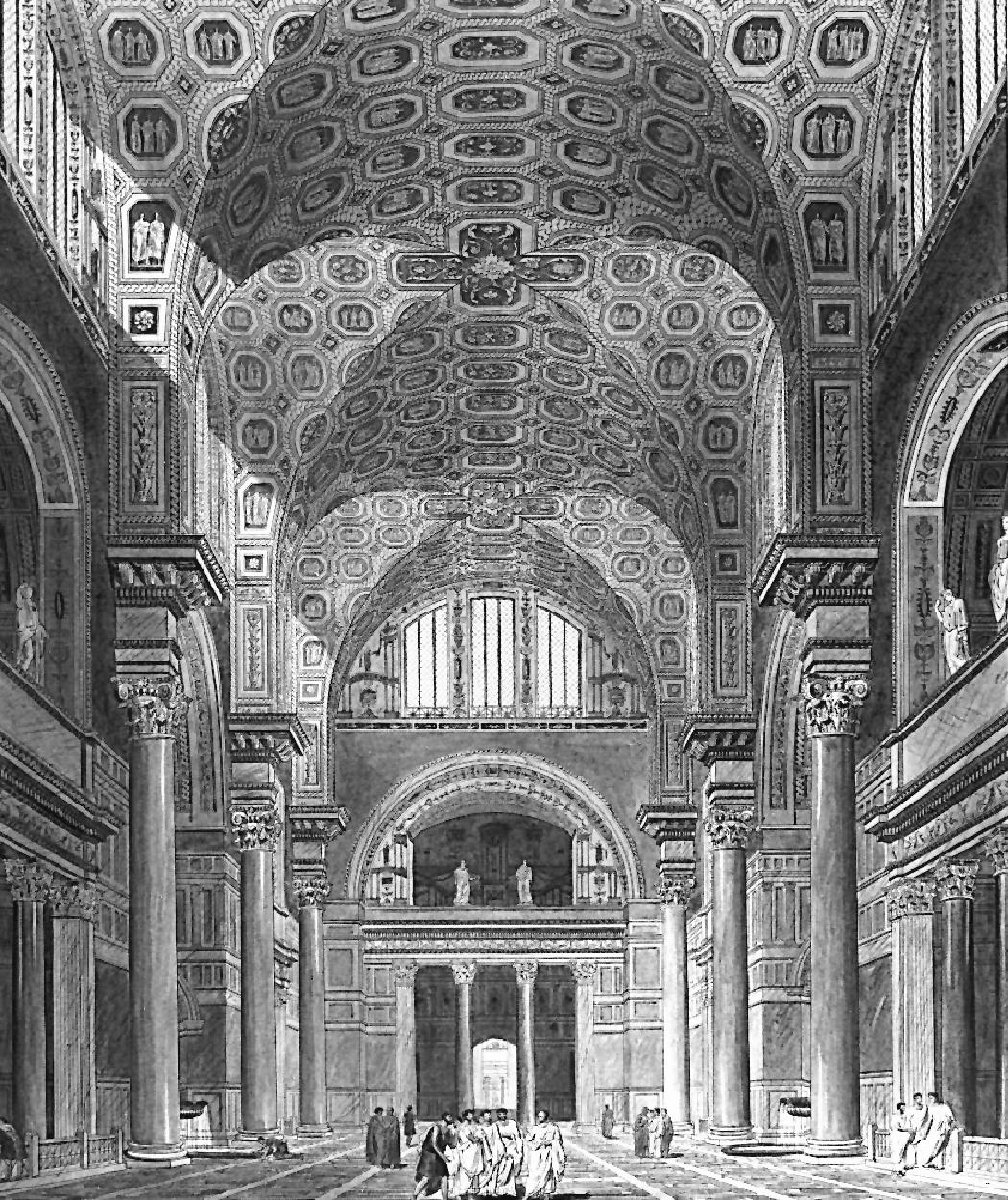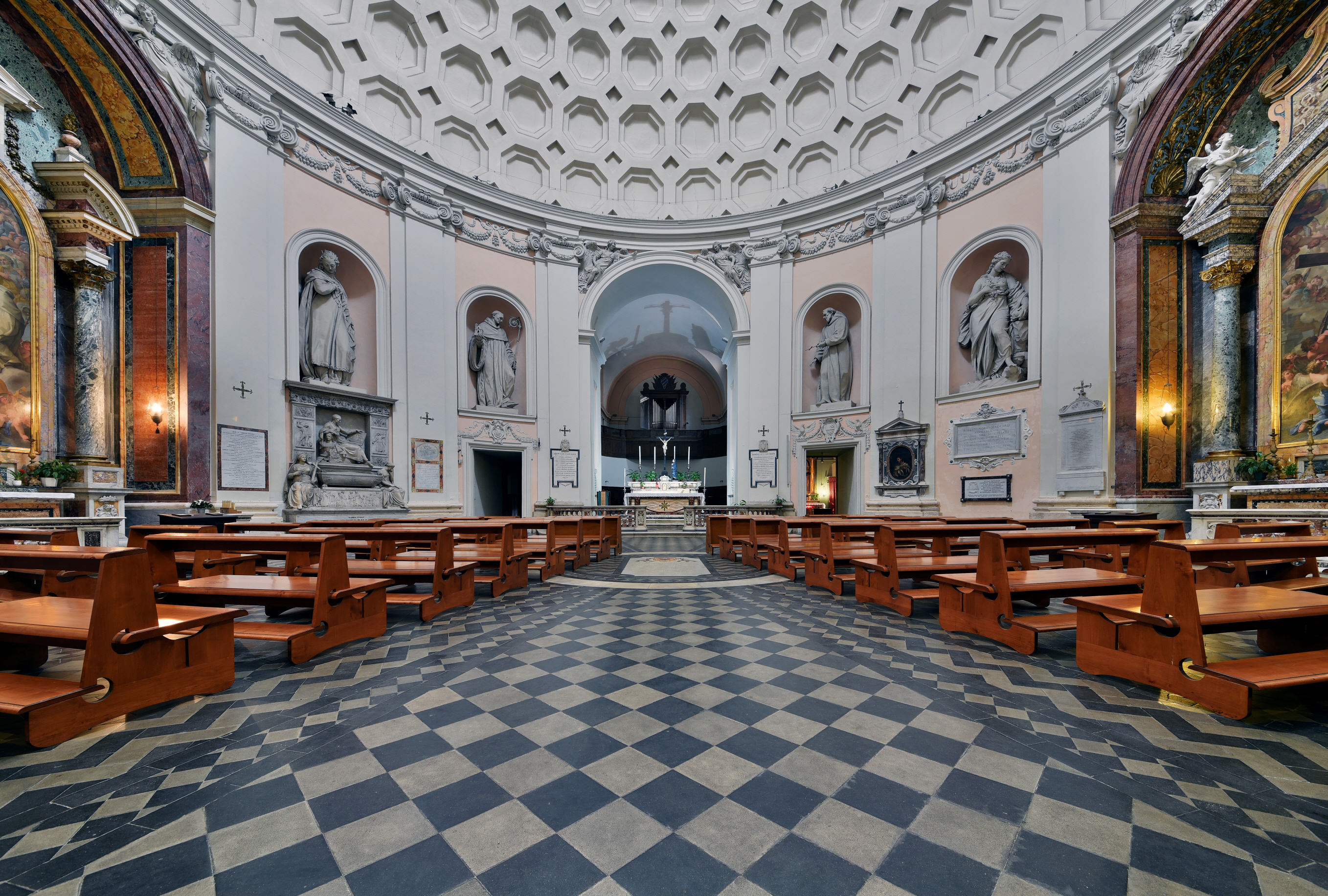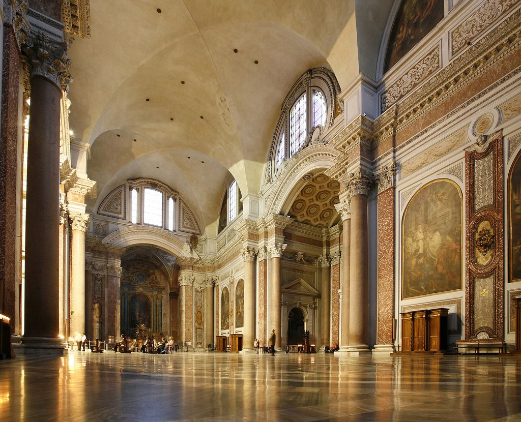 디오클레티아누스 목욕탕을 재건한 이 섹션은 중앙 천장의 거대한 크기를 잘 보여준다. 오늘날에도 산타 마리아 델리 안젤리 교회의 본당으로 사용되는 이 홀을 볼 수 있다.