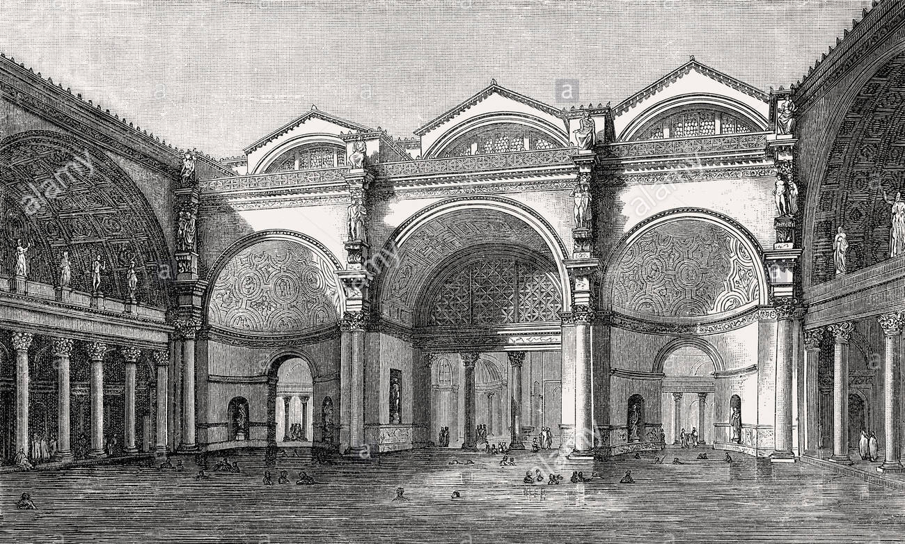 디오클레티아누스 목욕탕은 로마에서 가장 크고 아름다웠다. 한 번에 3,000명까지 수용할 수 있었다. 목욕탕에 도서관, 공연장, 분수대와 달리기 트랙이 있는 정원, 그림 및 조각 전시관, 여러 체육관 등이 있었다.