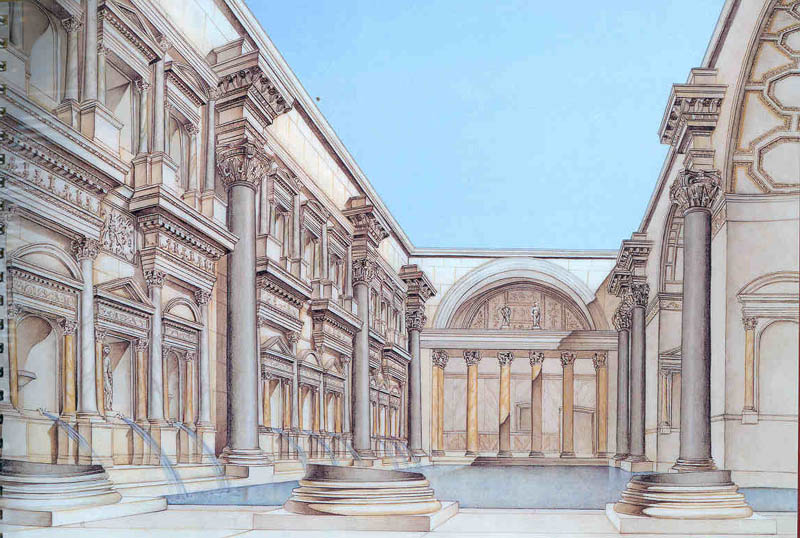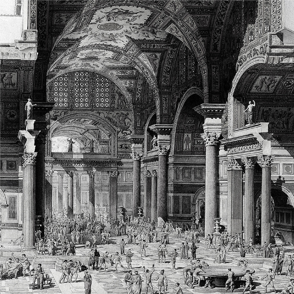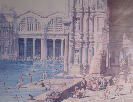 카라칼라 목욕탕. 이곳은 건설 당시만 해도 알려진 것 중 가장 컸다. 엄숙한 외부의 모습, 그러나 화려하게 장식된 실내는 도서관보다는 사람들로 붐비는 목욕탕, 운동하는 사람들, 지식인들의 활기에 확실히 진동하고 있었다.