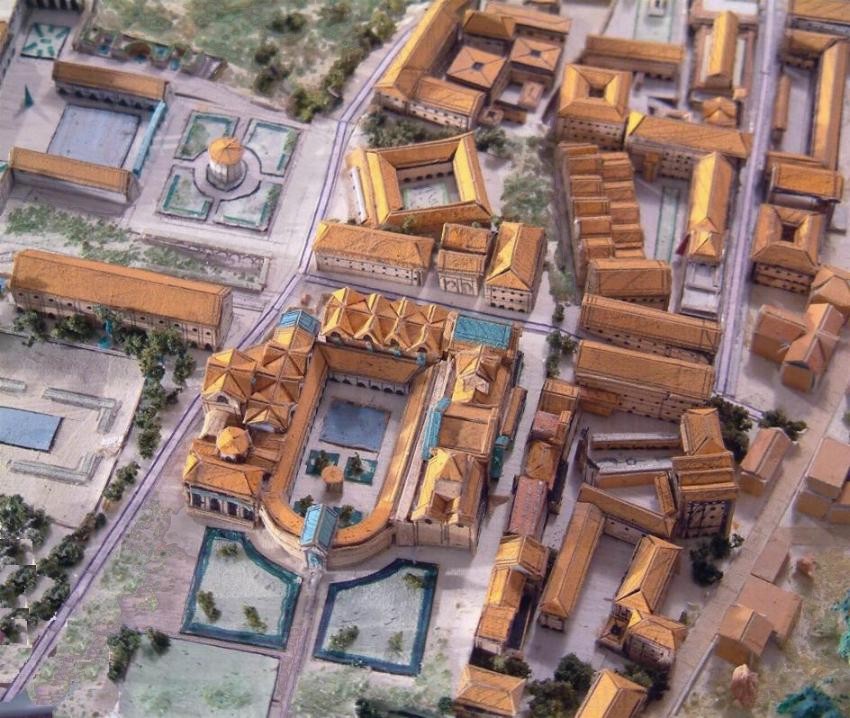 4세기 로마에는 적어도 900개의 목욕탕이 있었다. 사진 하단에 있는 콤모두스 목욕탕처럼 대부분 아주 간단하게 배열되어 있었다. 카라칼라 목욕탕에서 불과 몇 발자국 떨어진 곳에 지어졌다. 콤모두스 목욕탕 지역은 매우 쾌적한 장소였음에 틀림없다.