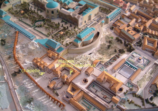 M. 세르빌리우스 노니아누스 궁전과 카라칼라 목욕탕 사이에 아일리우스 막시무스 아우구스토룸 리베르투스의 저택과 그 근처에 테라 마테르 예배당이 있었다.