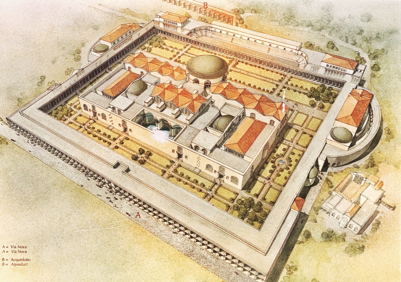 목욕탕의 끝없는 파사드 앞에서 노바 가도는 전경에 보이는 아피아 가도와 평행하게 달리고 있었다.