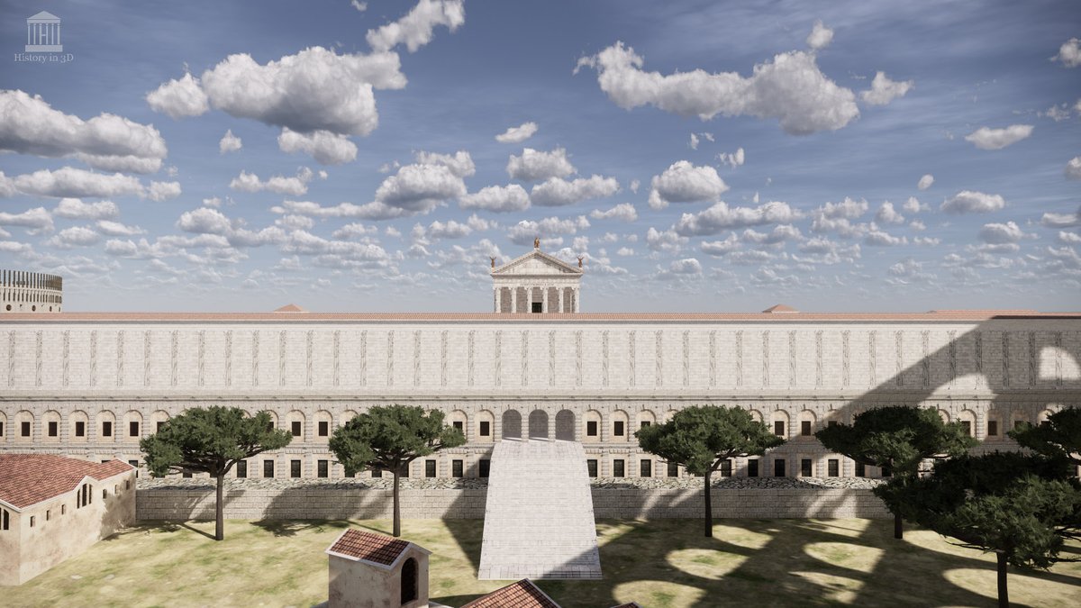 이 각도 아래에서, 오른쪽에 콜로세움으로 향하는 북쪽의 거대한 계단을 볼 수 있다. 둘러싸인 내부를 방문하는 것은 동시대 사람들을 놀라게 했음에 틀림없다.