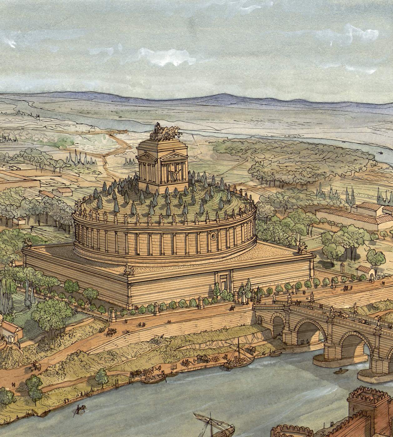 로마의 도시 확장과 도시의 번잡함으로 인해 소수의 유복한 사람들에게 그들의 빌라와 도무스를 아우렐리아누스 성벽 밖에 짓도록 했다. 바티칸 지역과 하드리아누스 영묘는 가장 쾌적한 장소 중 하나였다. 사진에는 AD 44년 집정관이자 네로의 어머니인 소 아그리피나의 두 번째 남편이기도 한 가이우스 살루스티우스 파시에누스 크리스푸스의 주랑 현관과 정원이 있다.
