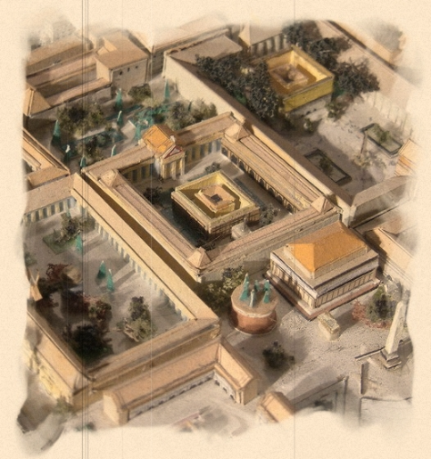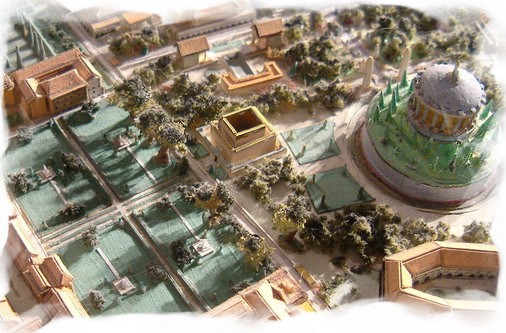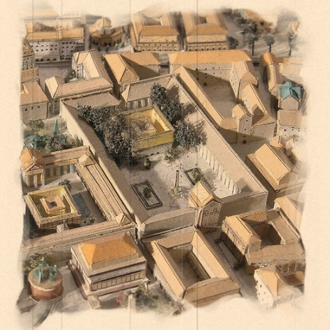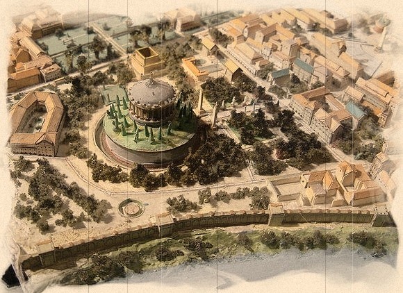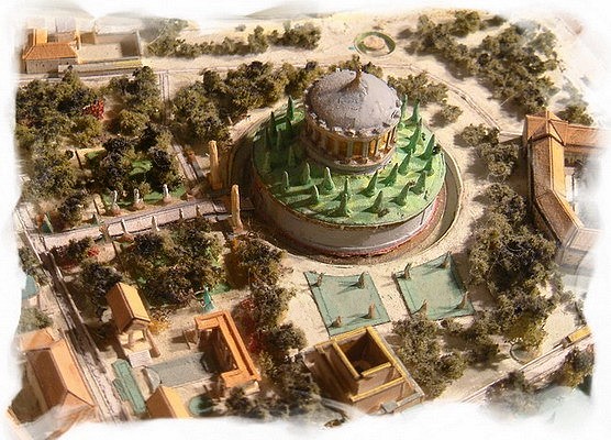 그러나 가장 유명한 정원과 궁전은 의심할 여지없이 하드리아누스의 영묘 주변의 거대한 지역을 뒤덮고 있는 도미티아의 저택이었다. 사진에서 영묘 뒤로 있는 도미티아 궁전과 정원의 일부를 보여준다.