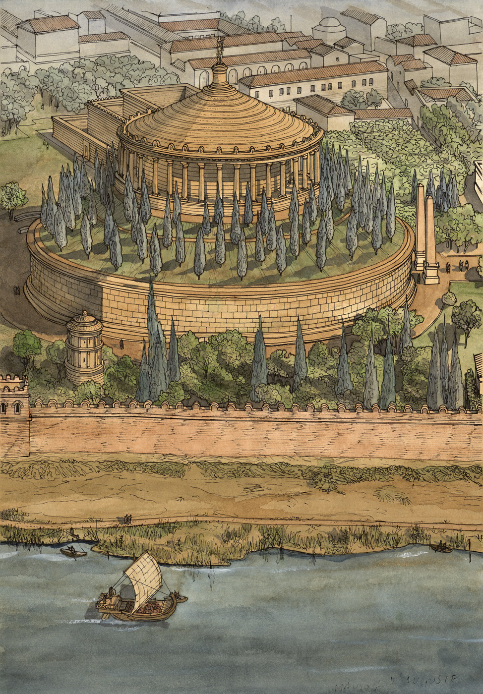 영묘는 황제가 그들의 가족을 위해 짓도록 한 무덤이다. 죽은 사람을 기리기 위해 세워졌지만 시신이 들어 있지 않은 '기념비'와는 반대로 말이다. 후대에 산탄젤로 성채가 되는 하드리아누스의 영묘가 가장 거대했다. 바티칸 나우마키아와 칼리굴라의 키르쿠스(모형에서 제외)에서 얼마 떨어지지 않은 곳에 위치한 영묘는 거대한 개인 정원으로 둘러싸인 테베레 강둑에서 특권적인 위치를 차지하고 있었다. 거의 모든 영묘는 에트루리아 무덤과 같은 건축양식으로 되어 있었다. 직사각형 기반 위에 편백이 심어진 고분으로 뒤덮인 원통형 구조물이었다. 하드리아누스 황제 외에도 안토니누스 피우스, 마르쿠스 아우렐리우스, 콤모두스, 셉티미우스 세베루스, 카라칼라 등 다른 유명한 사람들이 그곳에 묻혔다.