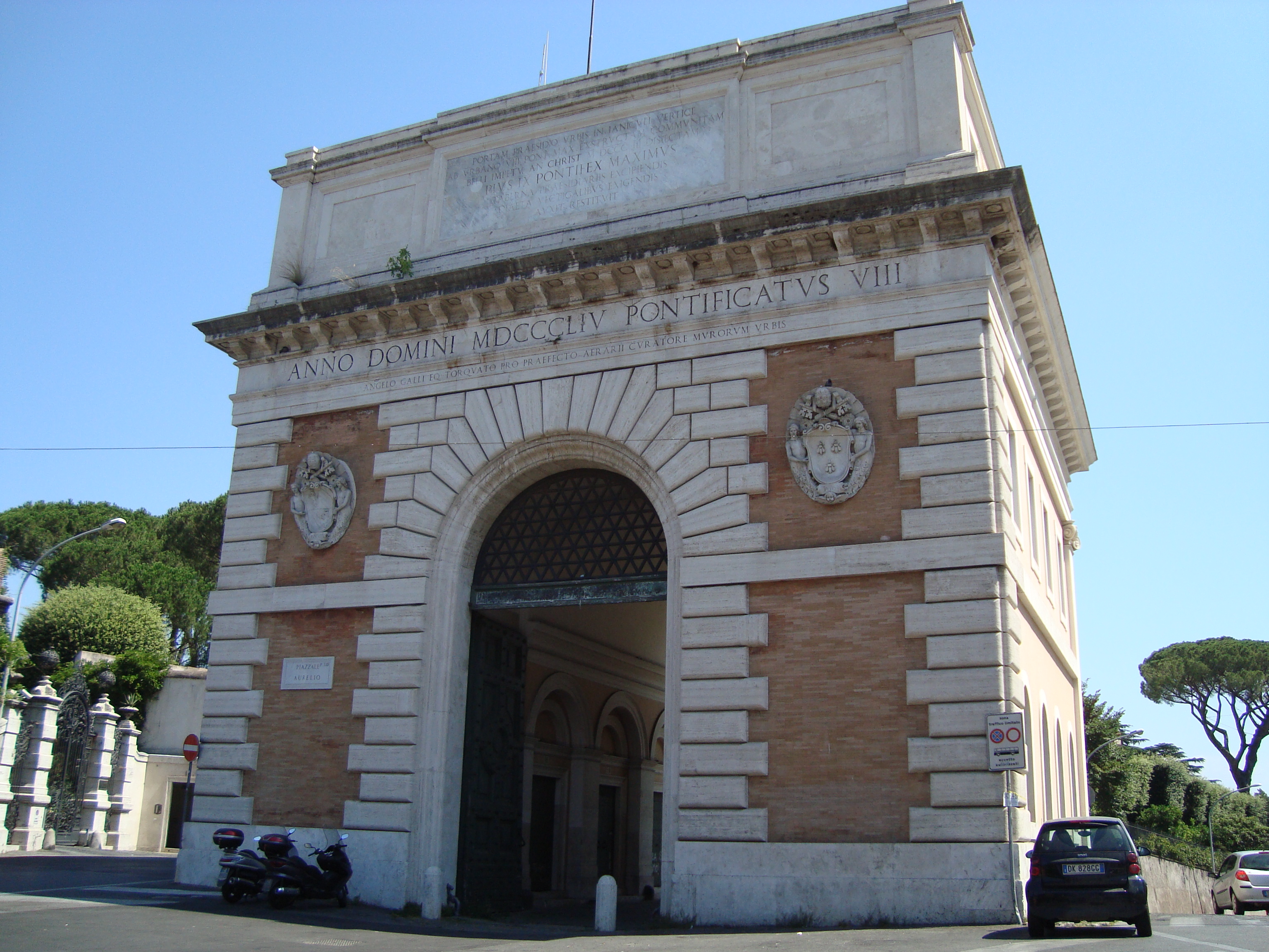 포르타 코르넬리아 근처에 있는 포르타 트리옴팔리스. 맞은편의 바티칸 골짜기로 통하는 네로 다리.
