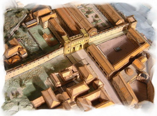 캄푸스 마르티우스에 있는 포르타 코르넬리아는 아일리우스 다리의 입구였다. 전경에 하드리아누스의 무덤의 조감도가 보인다.