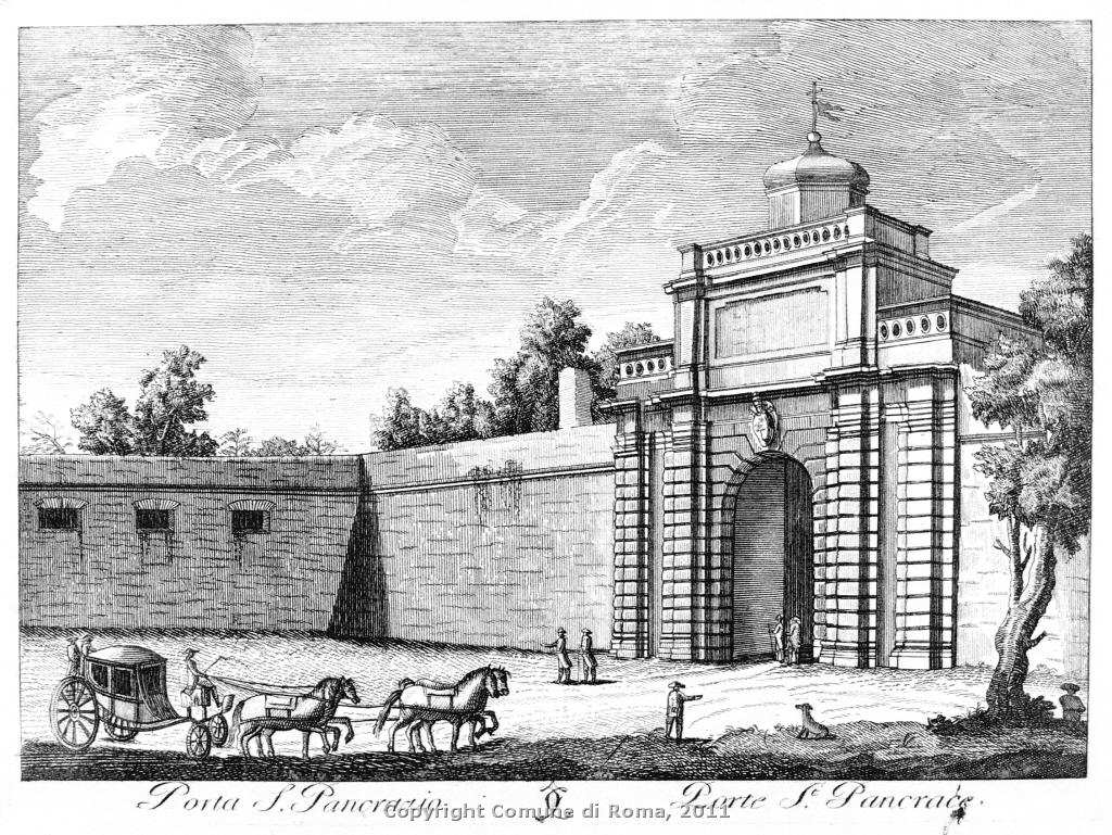 포르타 셉티미아나와 트라스테베레의 입구. 바티칸 골짜기와 트라스테베레를 잇는 셉티미아나 가도는 테베레 강과 야니쿨룸 언덕을 따라갔다.