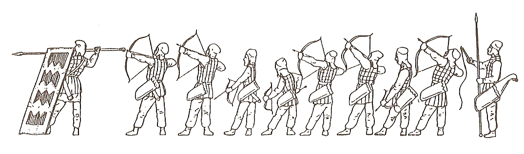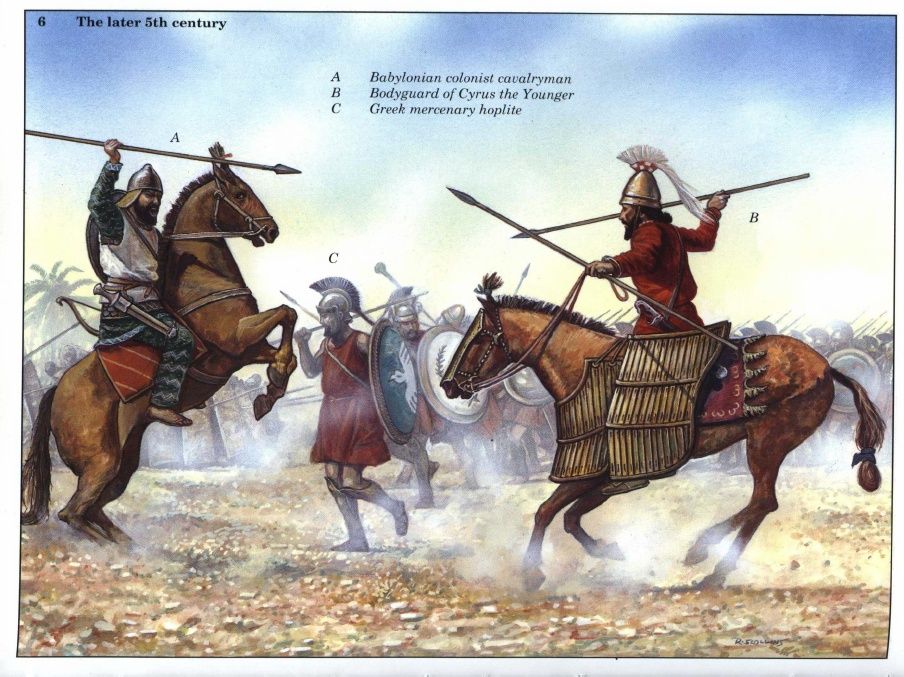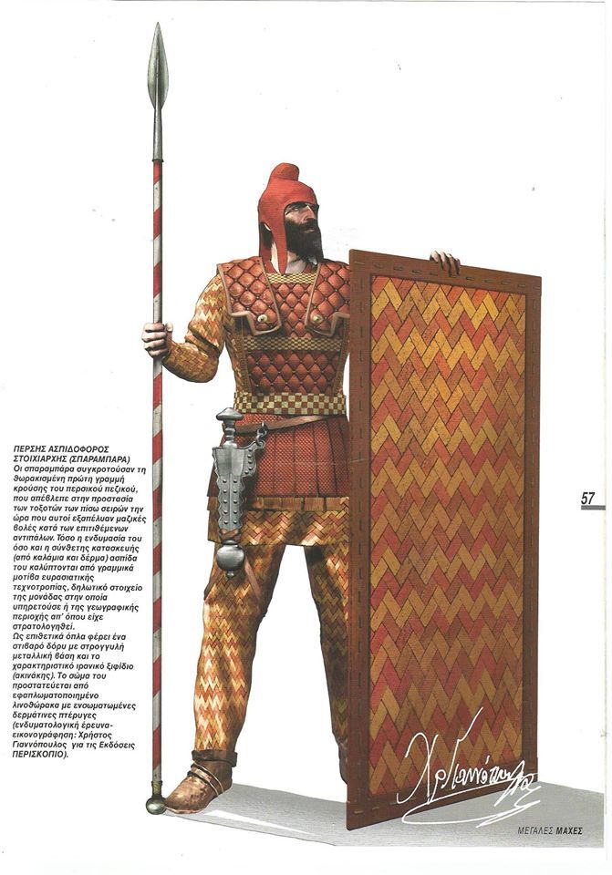 그리스 페르시아 전쟁에서 양측은 창으로 무장한 보병과 경무장한 투척 부대를 사용했다. 그리스 군대는 중장보병에 중점을 두었고, 페르시아 군대는 더 경무장한 부대를 선호했다.