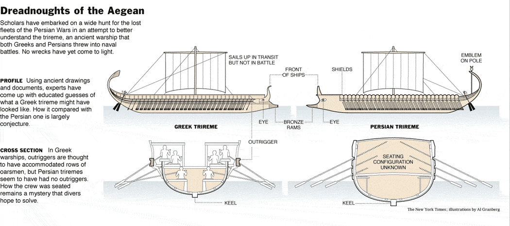 페르시아 해군은 주로 페니키아, 이집트, 킬리키아, 키프로스와 같은 제국의 항해 민족들이 제공했다. 페르시아 제국의 다른 해안 지역들은 전쟁이 진행되는 동안 내내 배를 제공했다.