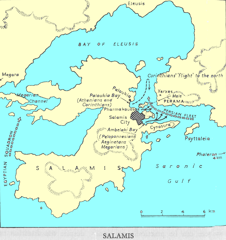 그러나 페르시아군은 살라미스에서 실제로 해전을 치를 필요가 없었다. 헤로도토스에 따르면, 카리아의 아르테미시아 여왕은 살라미스를 대비하고 있는 크세르크세스에게 이 점을 지적했다. 아르테미시아는 바다에서 싸우는 것은 불필요한 위험이라고 제안했고, 그 대신 다음과 같이 권고했다.