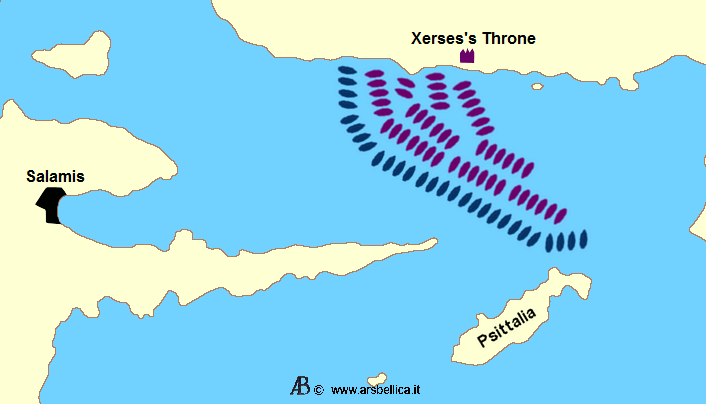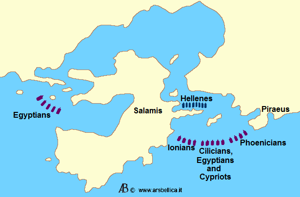 페르시아 함대는 살라미스 해협에 있는 연합군 함대를 봉쇄할 수 있을 만큼 충분히 컸고, 펠로폰네소스에 있는 지상군에 배를 보낼 수 있었다. 그러나, 최종 계산에서, 양측은 전쟁의 진로를 결정적으로 바꾸기 위해 모든 것을 해전에 걸 준비가 되어 있었다.