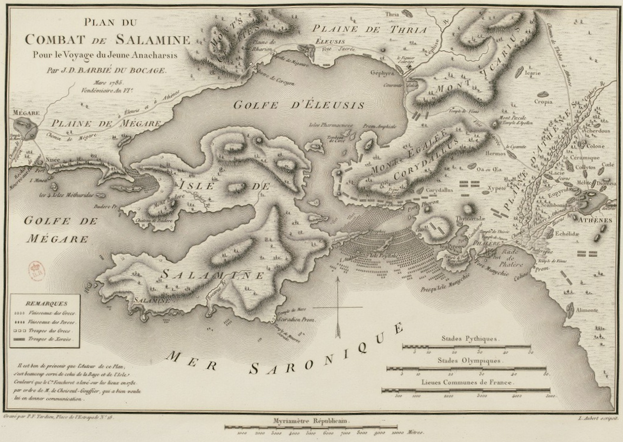 연합군 함대는 아테네의 마지막 대피를 돕기 위해 아르테미시온에서 살라미스로 노를 저었다. 도중에 테미스토클레스는 페르시아 함대의 이오니아 그리스 선원들에게 그들이 들릴 수 있는 모든 샘에 연합군의 대의를 위해 귀순하라는 비문을 남겼다. 테르모필라이에 이어 페르시아 군대는 항복하지 않은 보이오티아 도시 플라타이아와 테스피아이를 불태우고 약탈한 후 사람들이 모두 피난한 아테네로 진군했다. 연합군(대부분 펠로폰네소스인)은 코린토스 지협을 방어하기 위해 준비하면서 이 지협을 통과하는 외길을 부수고, 그 너머로 방어벽을 쌓았다.