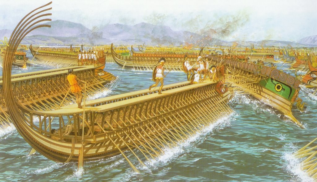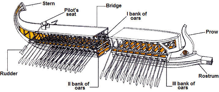 괄호는 펜테콘테로스(50개의 노를 가진 갤리 선박)를 나타낸다