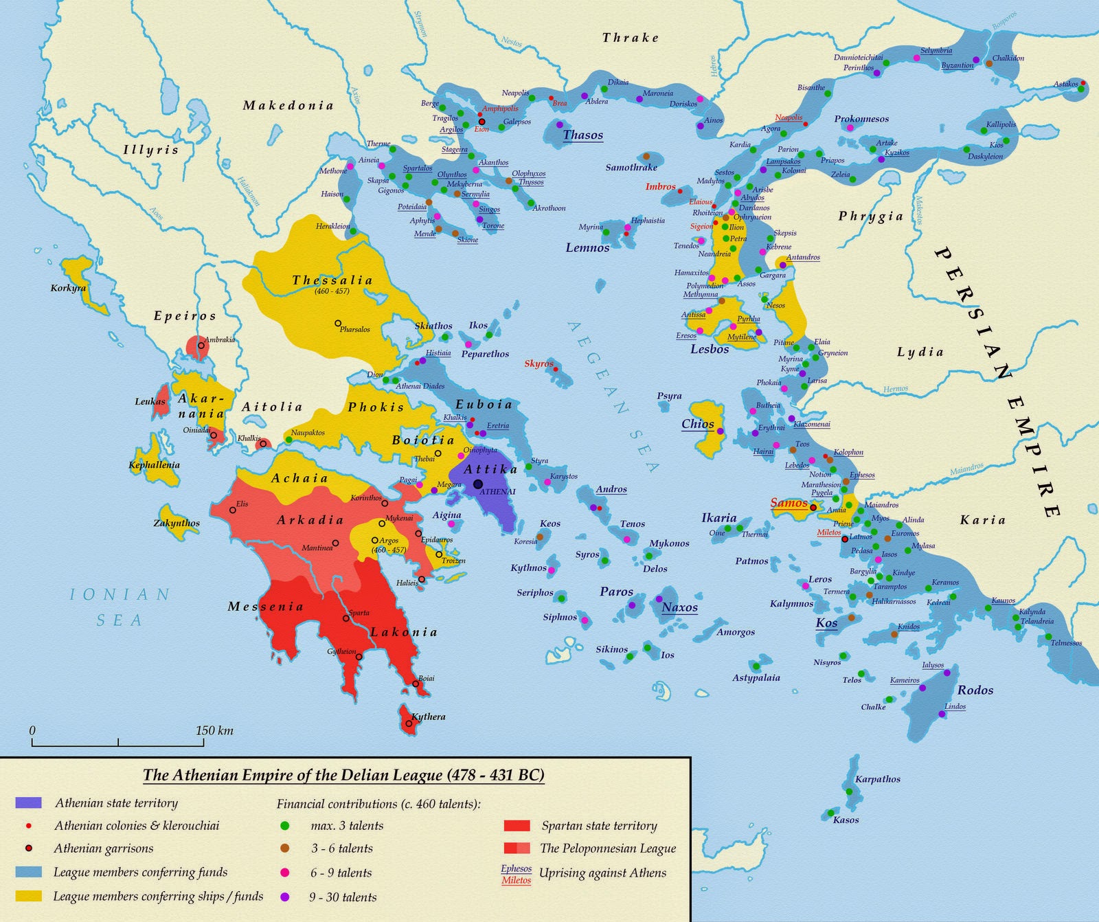 아테네에서 신설된 국고는 여러 목적으로 사용되었는데, 모든 것이 동맹국들의 방위에 관련된 것은 아니었다. 페리클레스가 아크로폴리스에 파르테논 신전을 짓고 오래된 신전을 대체한 것은 물론 다른 많은 비방위비 지출에 대한 것은 공금에서 비롯되었다. 델로스 동맹은 동맹에서 제국으로 변모하고 있었다.