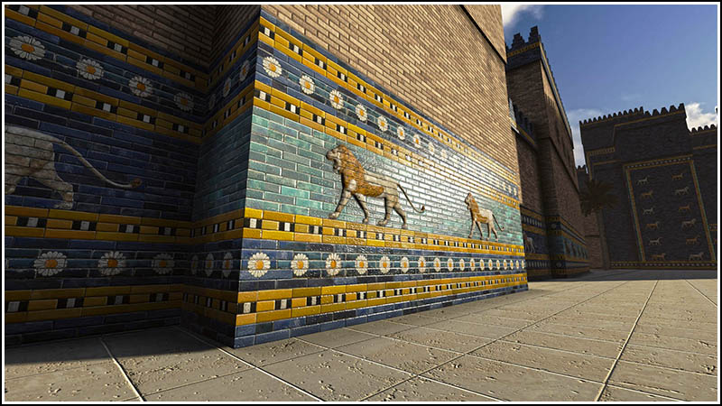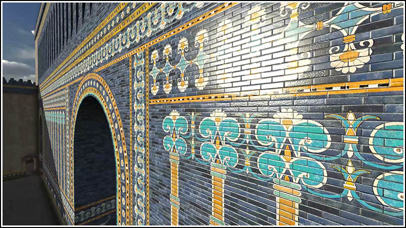 바빌론으로 들어가는 거대한 북쪽 입구인 이슈타르 문, 왕궁, 그리고 행렬의 길.