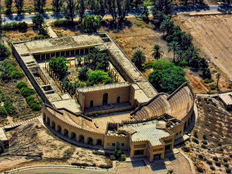 다른 각도에서 본 왕궁은 위에서 설명한 안뜰 전체를 추측할 수 있게 한다. 왼쪽 위에는 유명한 “바빌론의 공중정원”으로 알려진 녹색 테라스가 있다.