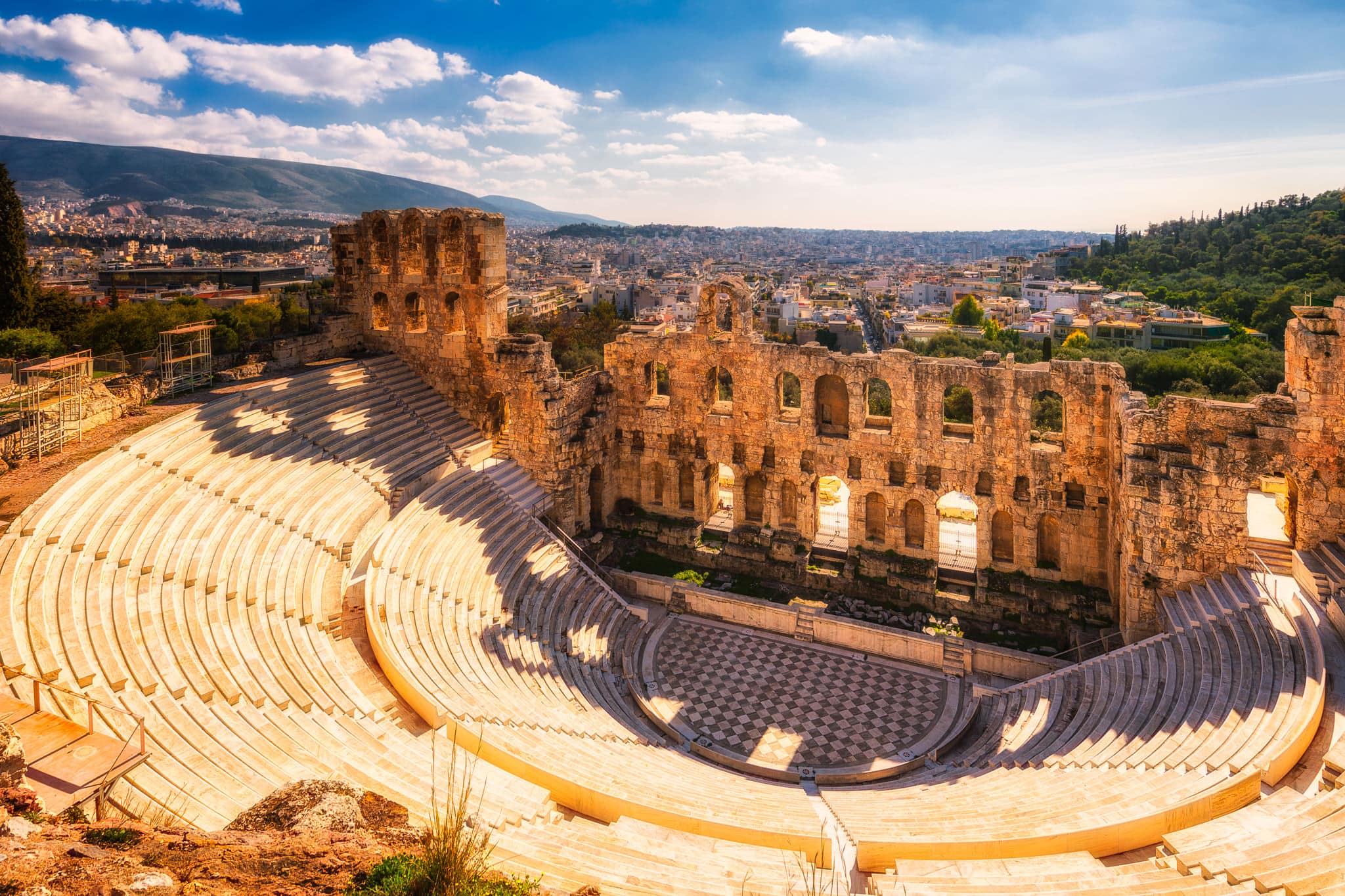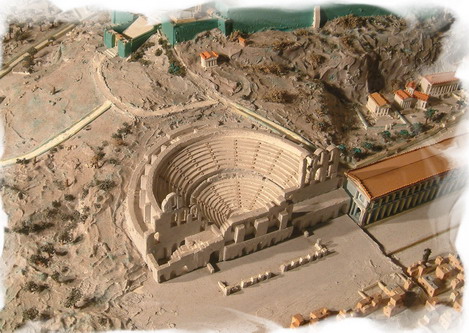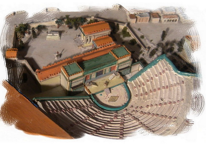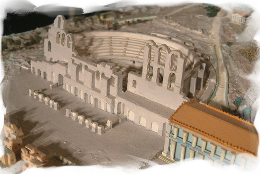 파르테논 신전을 제외하고 아크로폴리스의 유명한 기념물에 대해 말한다면 먼저 헤로데스 아티쿠스 오데이온(16)을 언급할 수 있다. 이 멋진 금융업자는 BC 160년에 바위에 이 극장을 파게 했다. 오데이온은 5,000명의 관객을 수용할 수 있다. 그리스 양식에 따르면, 절벽을 잘라낸 반원형 관객석은 외부 지지대에 의해 붕괴로부터 보호되었다. 관객석 아래에는 반원형의 오케스트라가 있었고, 마지막으로 로게이온이나 무대가 있었다.