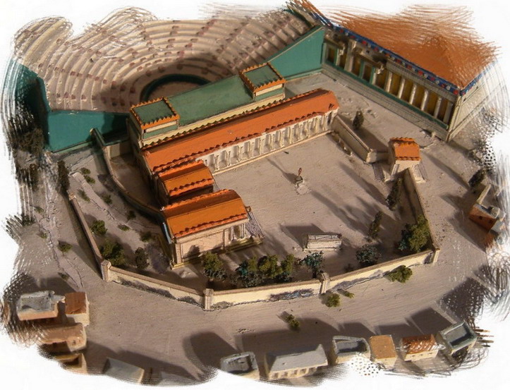 이 건물 단지는 아크로폴리스 기슭과 키몬 벽에 기대어 있는 주랑 현관과 작은 신전 단지였다. 디오니소스 극장과 마찬가지로 BC 4세기로 거슬러 올라간다.