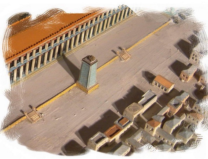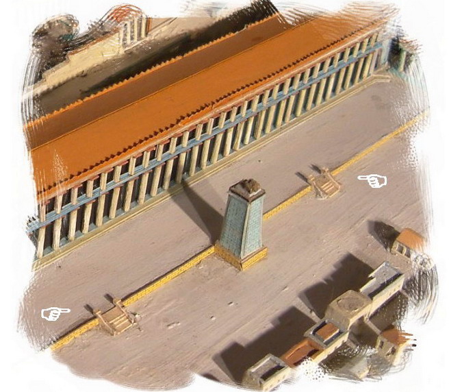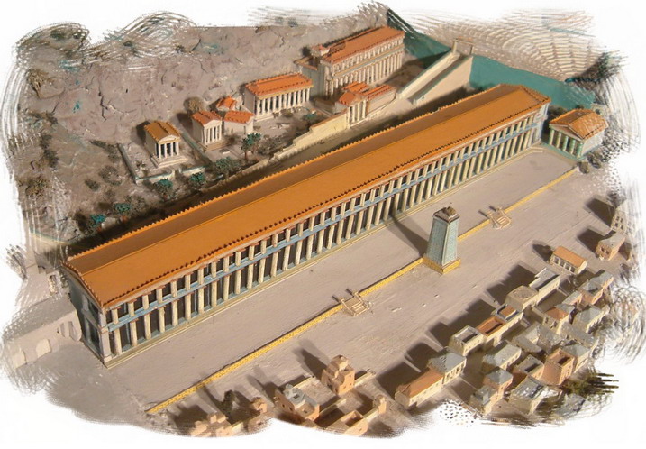 멀리서 보면 이 구조물이 얼마나 거대했는지 알 수 있다. 스토아와 산책로의 중앙에는 기증자의 것으로 여겨지는 거대한 조각상(17a)이 서 있었다.