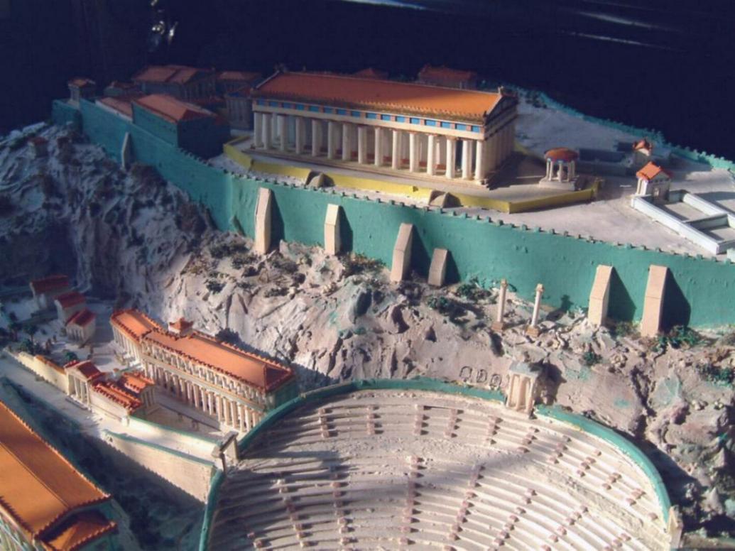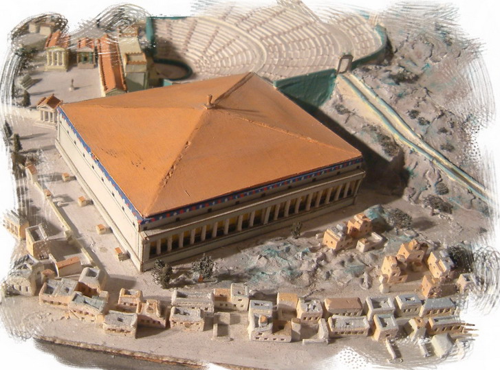 모형에서 오데이온은 다른 건물들처럼 재건된 모습이 아닌 오늘날 모습 그대로 나타냈다. 아크로폴리스에서 가장 웅장하고 가장 잘 보존된 유적지 중 하나를 보여주고 있다.