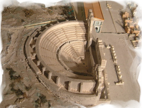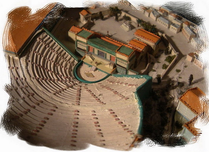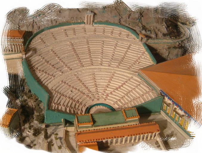 아테네에서 디오니소스 극장(24)은 모든 그리스 극장 중에서 가장 유명하다. BC 6세기와 5세기에, 관객석은 오직 나무로 만들어졌다. 이 극장에서 에스킬레스, 소포클레스, 에우리피데스, 아리스토파네스의 연극이 불멸했다. 나무 관객석이 무너진 후, BC 500년에서 497년 사이에 돌로 된 객석이 지어졌다. 반원형 관객석은 13,000명까지 수용될 수 있었다. 원래 원형이었던 오케스트라는 네로 시대에 중앙에 여러 가지 색의 돌 마름모로 된 대리석 포장을 덮은 반원형으로 바뀌었다.