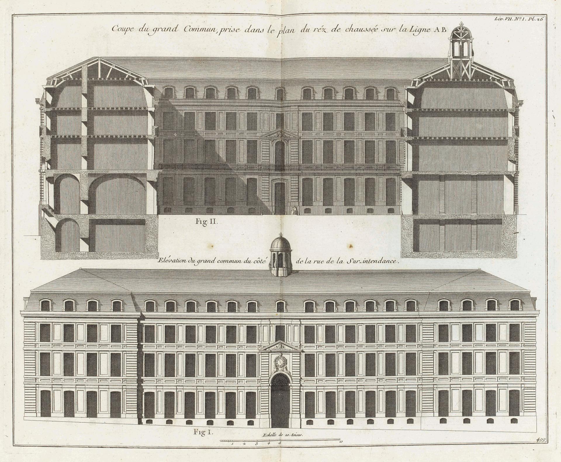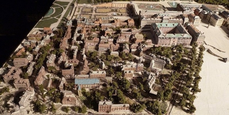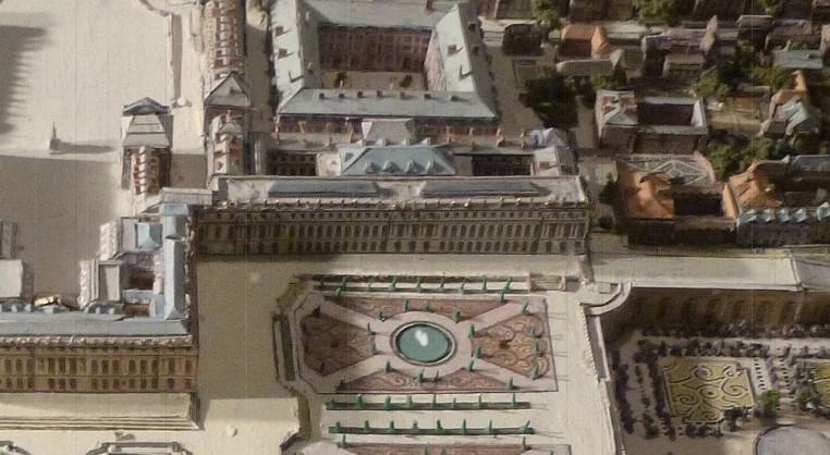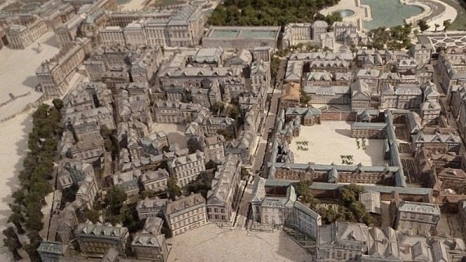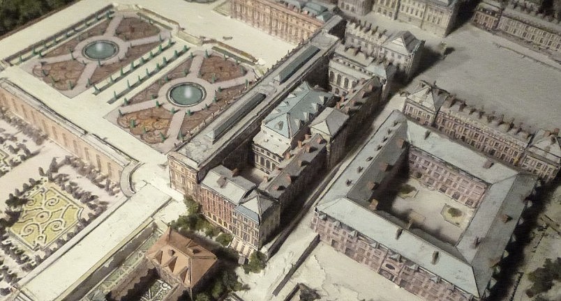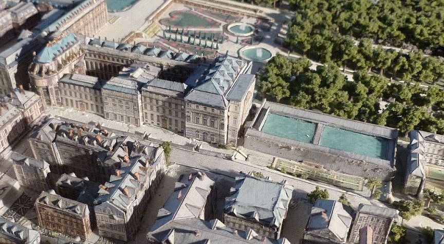 정원 쪽에서 본 궁전의 조감도. 왕정 시대에는 적어도 3,000명의 사람들이 그곳에서 살아야 했다.