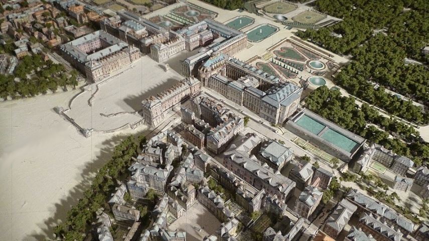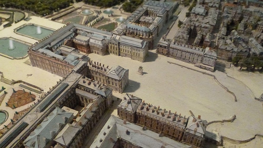 아흐므 광장(Place d’Armes, 퍼레이드 장소)의 남쪽에는 루이 13세 당시의 작은 고대 마을인 '오래된 베르사유'가 있었다. 이 오래된 마을은 왕정 시대 동안 확장되어 번화한 마을이 되었다. 건물 증축을 위한 푸른 지붕이 있는 전경에 1789년 6월 20일 제3신분 의원 300명이 유명한 선서를 한 '주드폼(jeu de paume)'이 보인다.