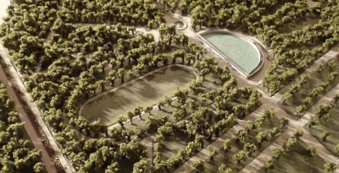 물 정원(1)은 궁전 산책로에 있는 두 개의 큰 못이다.