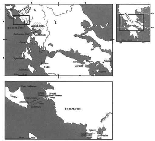 코린토스는 모도시의 영향을 더 이상 받고 싶지 않은 오래된 코린토스의 식민지인 코르키라와 분쟁 중이었다. 당시 그리스에서 두 번째로 큰 해군을 보유한 코르키라에 패배한 코린토스는 연합해군을 구축하기 시작했다. 놀란 코르키라는 아테네와의 동맹을 추구했고, 코르키라와 코린코스 양쪽의 논쟁과 의견을 바탕으로 아테네는 코르키라와 방어 동맹을 맺기로 결정했다. 아테네는 코르키라 함대를 강화하기 위해 10 척의 배를 보냈지만 코르키라 섬에 상륙을 시도하지 않는 한 코린토스 함대와 싸우지 말라는 명령을 내렸다. 한편 코린토스는 크세노클리디스의 지휘 하에 함대를 모아 코르키라로 향할 준비를 했다.