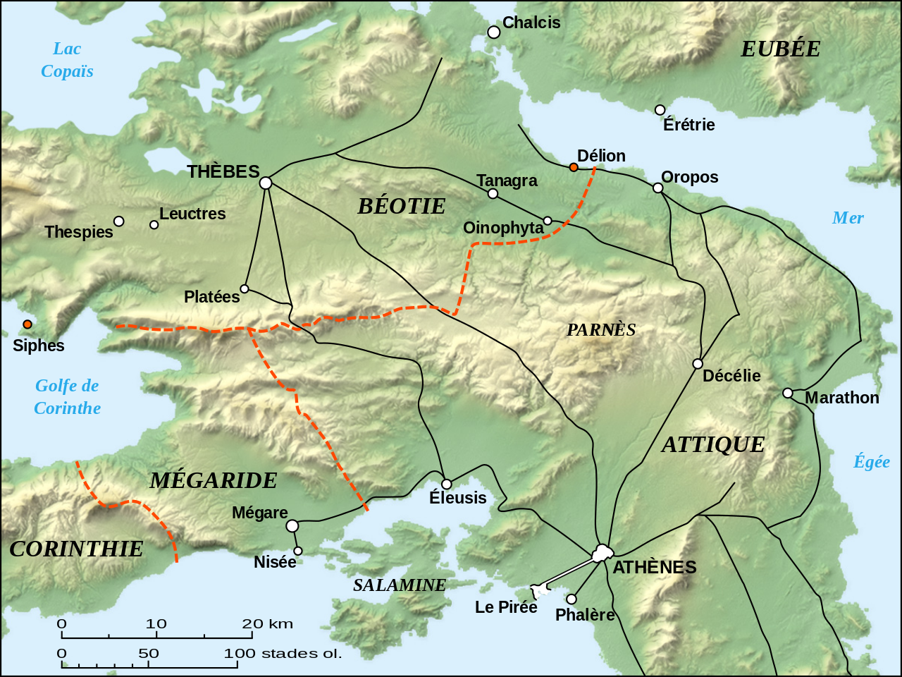 히포크라테스는 결국 아테네 군대와 함께 보이오티아에 도착했고 델리온의 신전을 요새화 하기 시작했다. 5일 후, 요새가 완성되었고, 히포크라테스는 수비대를 세우고 그의 나머지 군대를 아테네로 돌려보냈다. 동시에 보이오티아인은 히포크라테스에 도전하기 위해 군대를 모았지만, 아테네군이 떠나는 것을 보았을 때, 그들 중 많은 사람들은 공격하는 것이 무의미하다고 생각했다. 보이오티아 군대의 사령관인 테바이의 파곤다스는 아테네군이 결국 돌아와서 델리온을 추가 침공을 위한 기지로 사용할 것을 알았기 때문에 그들에게 어쨌든 공격하도록 촉구했다.