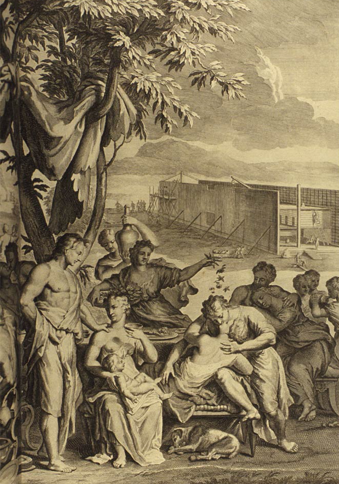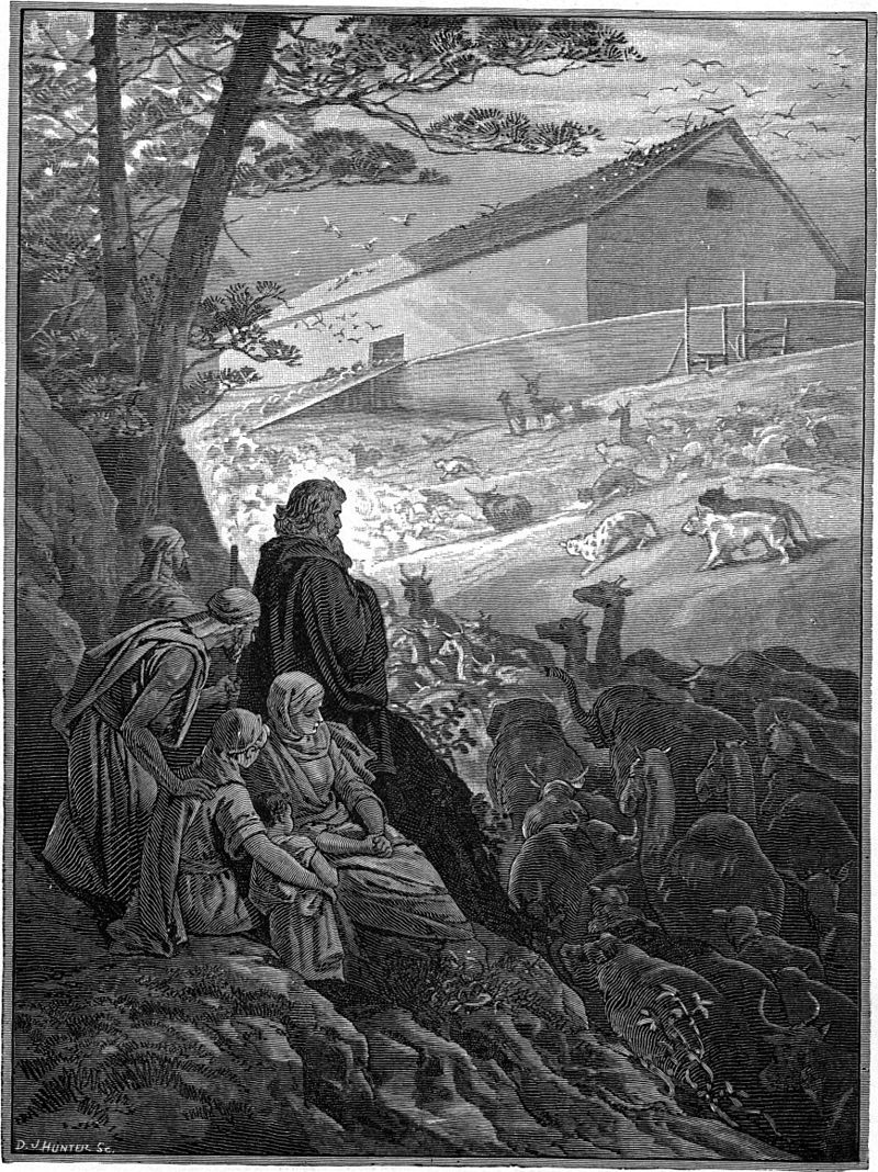 창세기 기록에 따르면 노아는 하나님의 명령에 따라 방주를 짓기 위해 충실하게 노력했고, 이는 결국 자신의 가족뿐만 아니라 인류와 모든 육지동물을 홍수 동안 멸종으로부터 구했다. 그 후 하나님은 노아와 언약을 맺으시고 다시는 홍수로 이 땅의 모든 생명체를 멸하지 않겠다고 약속하셨다. 홍수 이야기 다음에는 함의 저주에 대한 이야기로 이어진다.
