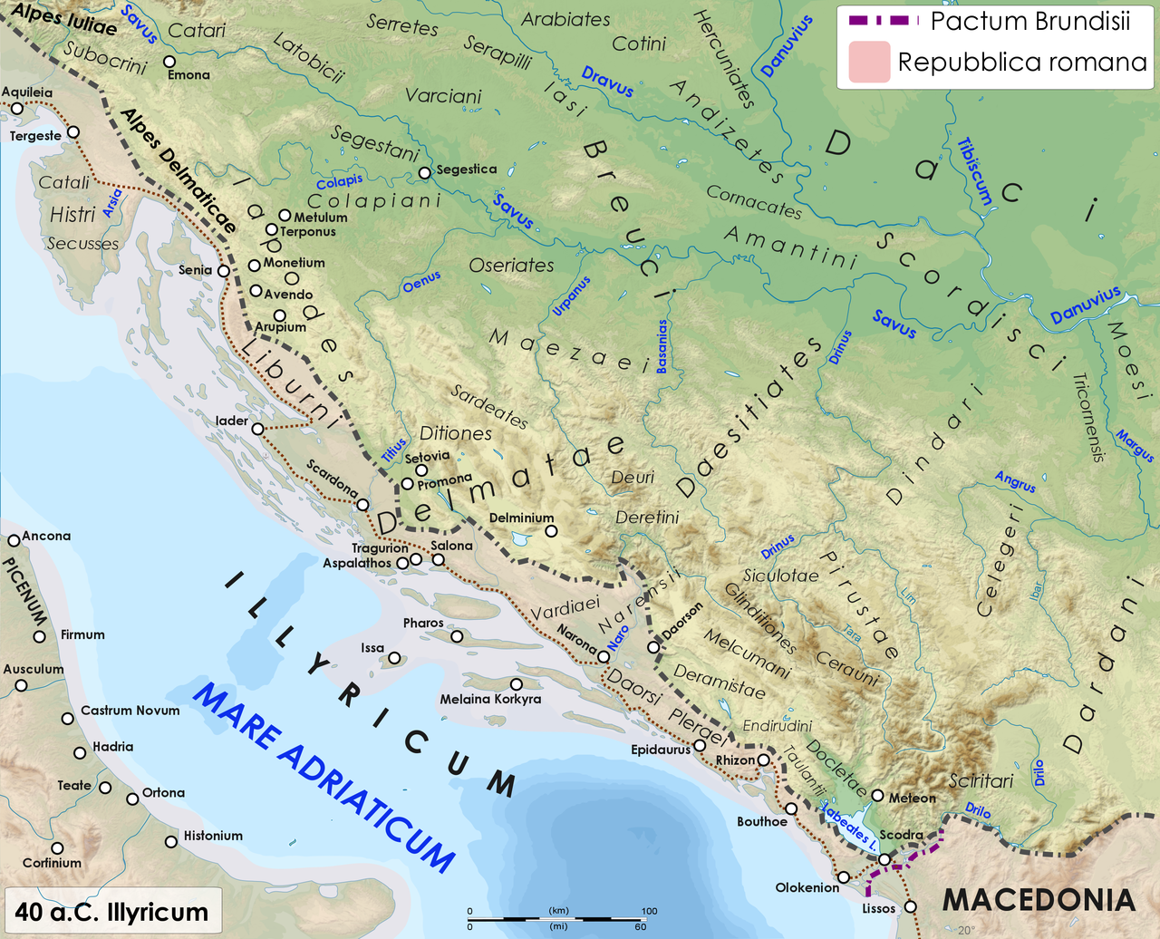 카이사르의 내전, 리베라토레스의 내전, 섹스투스 폼페이우스(폼페이우스 마그누스의 아들)가 강력한 함대를 이끌고 시칠리아에서 지휘한 제2차 삼두정치에 대한 저항(시칠리아 반란, BC 44-36년)은 이탈리아 북동부와 아드리아 해에 인접한 일리리아에 불안정을 야기했다. 이아피데스족은 이탈리아 북동부를 급습했다. 해적 문제가 있었다. 이러한 분쟁이 끝난 후 옥타비아누스는 일리리쿰에서 일련의 캠페인에 착수했다. 벨레이우스 파테르쿨루스는 옥타비아누스가 시칠리아 반란 직전에 "일리리쿰과 달마티아"를 자주 원정해 군대를 쉬지 않게 하고 전투력을 강화시켰다고 기록했다. 하지만 이러한 캠페인은 지역의 불안과도 연관이 있었던 것으로 보인다. 카시우스 디오는 BC 39년 가이우스 아시니우스 폴리오가 몇 번의 전투 끝에 파르티니족의 반란을 진압했다고 파심(Passim)에서 언급했다.