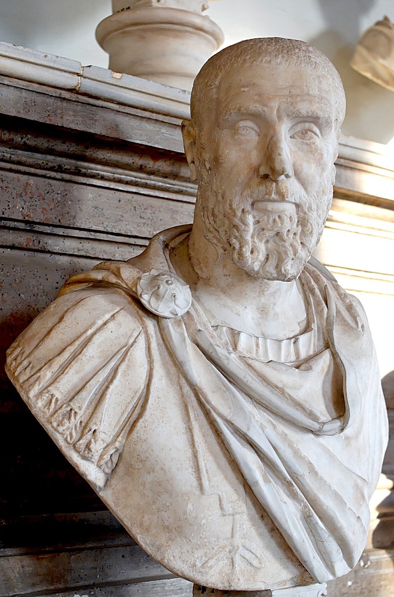 마르쿠스 아우렐리우스 클라우디우스 '고티쿠스' 또는 클라우디우스 2세는 치세 동안 알레만니족과 성공적으로 싸웠고 나이수스 전투에서 고트족을 결정적으로 패배시켰다. 그는 제국의 여러 지방을 황폐화시킨 키프로스의 역병일 가능성이 있는 "악성 전염병"에 굴복한 후 사망했다. 메디올라눔 포위 중 갈리에누스가 살해된 뒤 클라우디우스가 군대에 의해 황제로 선포되었다. 그가 즉위할 당시 제국은 이민족의 침입으로 심각한 위험에 처해 있었다. 고트족과 알레만니족을 격퇴하고 갈리아 제국으로부터 히스파니아와 론 강 계곡의 지배권을 회복했다. 269년 말, 시르미움에서 판노니아를 습격하던 반달족과의 전쟁을 준비하던 그는 전염병의 희생양이 되어 270년 1월 초에 사망했다.