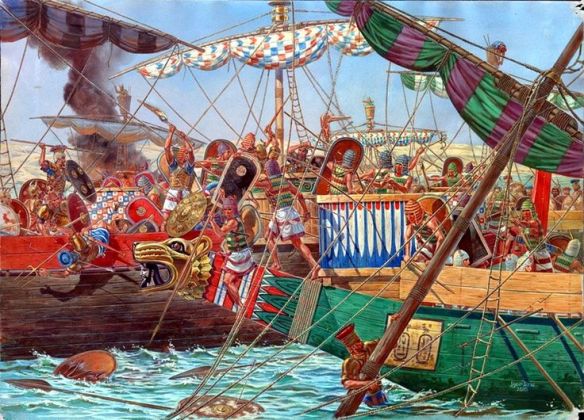 남쪽의 적이 왔다... 왕은 그를 살아있는 죄수로 삼았고, 모든 백성이 끌려갔다. 나는 적의 배에서 두 명의 궁수를 붙들었고, 어느 날 내 도시에 있는 5 스탓(한 스탓은 약 1/4 헥타르)에 달하는 땅 외에 다섯의 머리를 받았다. 모든 선원들에게도 똑같이 행해졌다.