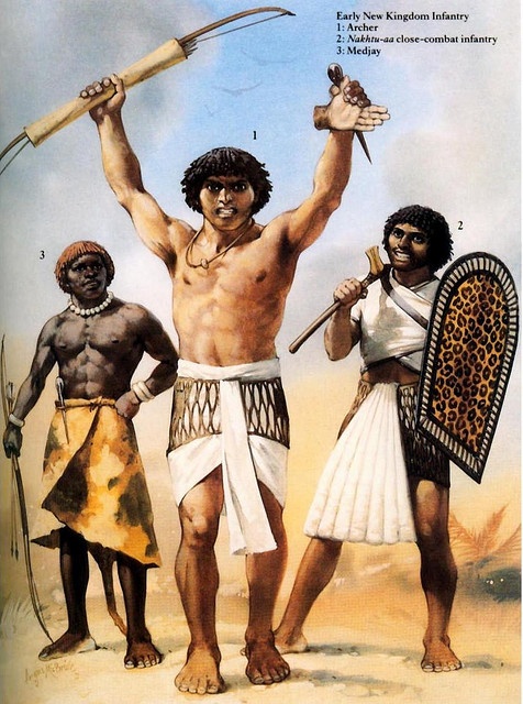 누비아의 메드자이 군대는 이집트에서 처음에는 힉소스에 맞서는 용병으로 사용되었다. 메드자이와 리비아와 같은 속국 출신의 다른 외국 신병들은 신왕국 군대에 없어서는 안 될 존재가 되었다.