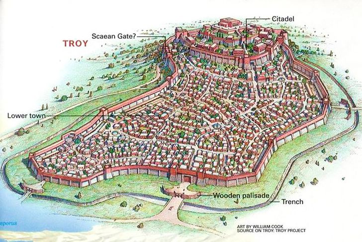 도시의 방어시설은 종종 성벽을 둘러싸고 있는 해자라고 불리는 깊은 도랑을 포함했다. 높이를 높이기 위해 성벽이나 성벽 기슭에 지어진 해자는 부지를 보호하는 데 도움이 되는 천연 경사나 언덕이 없는 평탄한 지형에서 특히 중요했다. 때로는 해자는 물로 채워져 방어력이 강화되기도 했다.