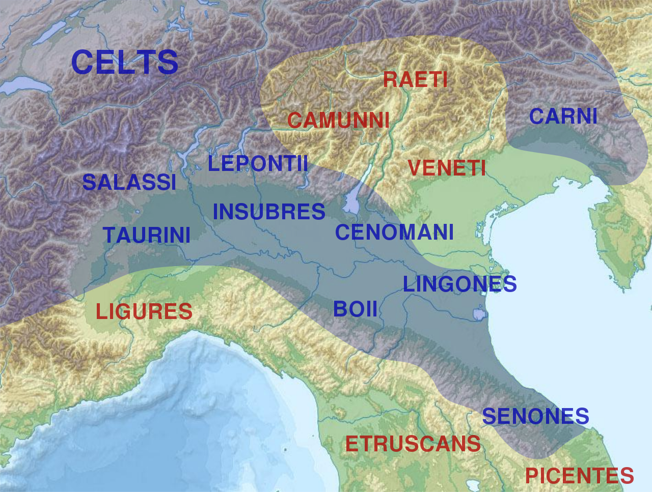 이탈리아 북부에 대한 켈트족의 초기 진출은 평화로웠을지 모르지만 BC 400년 이후에는 폭력적으로 변했다. 아테나이오스의 저술에서 묘사된 것과 같은 연회 동안 전쟁과 습격을 촉구하는 외침이 선포되었다.