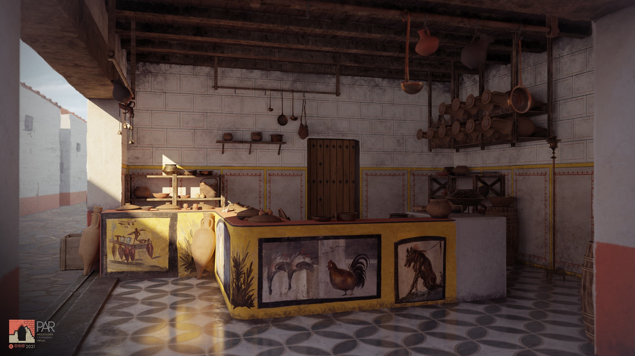 이곳에는 풀로니카에서 일하는 노예들을 위한 부엌(자유민 일꾼은 집에 가서 먹었음)과 화장실도 있었다. 기존에는 소다나 소변(사람이나 동물)을 섞은 물에 두드리는 대야에서 옷감을 발로 밟아 얼룩을 제거했다. 그런 다음 점토나 흙으로 연하게 하고, 다림질로 두드려 질감을 재 응축한 다음, 풀론 물질(작업을 위해 섞은 화학 물질)을 제거하기 위해 마지막에 물로 헹구었다.