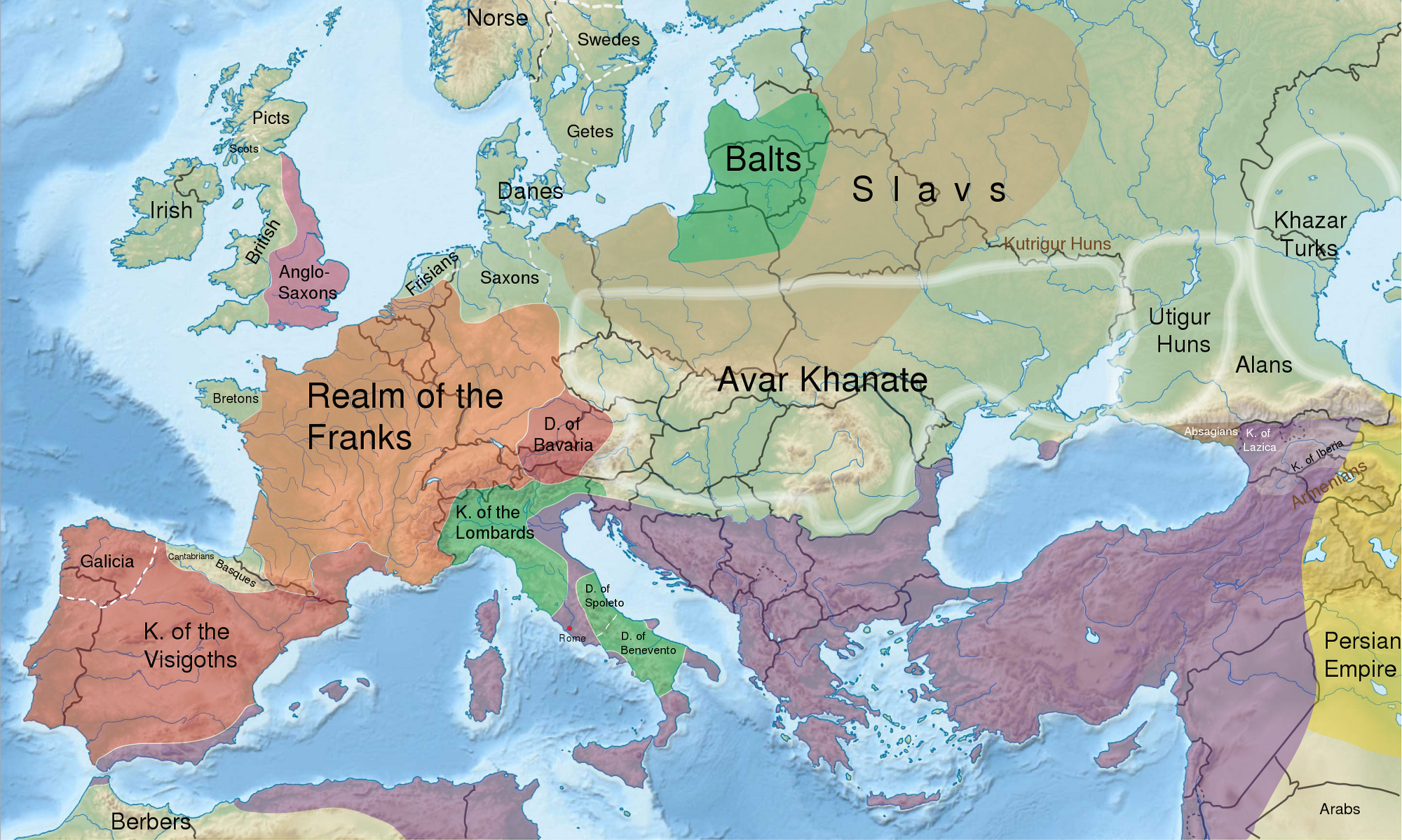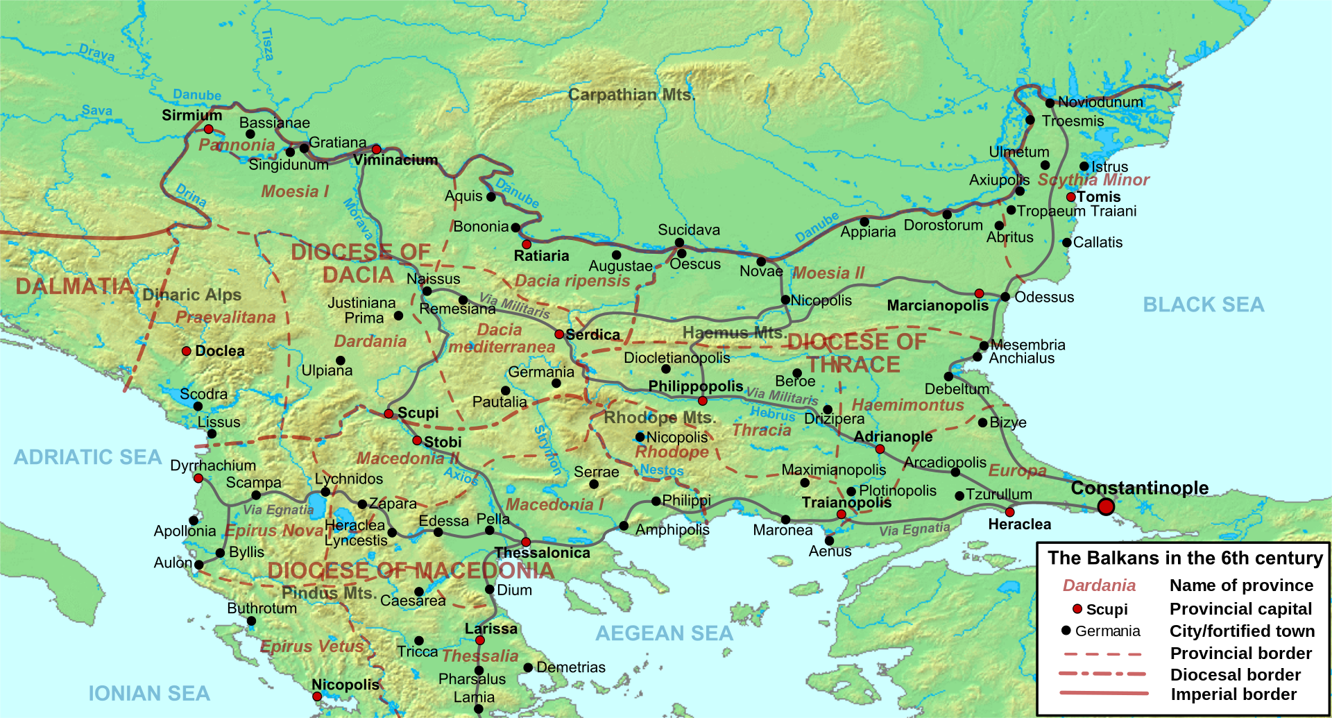 568년 카르파티아 분지에 이른 아바르족은 시르미움을 공격하고 달마티아 속주를 침략하기 위해 코트리구르 훈족 1만 명을 보냈다. 매년 8만 솔리디의 금을 지불하게 되었고 579년 국고가 비면서 티베리우스 황제는 지불을 중단했다. 이에 아바르족이 시르미움을 공격해 581년 도시가 함락되었고 그들은 10만 솔리디를 요구했다. 제국이 거절하자 그들은 발칸 북부와 동부를 약탈하기 시작했다. 슬라브족은 580년대에 이 지역에 정착하기 시작하여 펠레폰네소스까지 진출했다. 592년 마우리키우스 황제는 아바르족에게서 싱기두눔을 탈환하고 593년 다뉴브 강 남쪽에 있는 슬라브족, 아바르족, 게피드족을 격파했다. 599년과 601년에 비잔틴군은 아바르족과 게피드족 사이에 대혼란을 일으키고 602년에는 슬라브족을 왈라키아에서 참패시켰다.